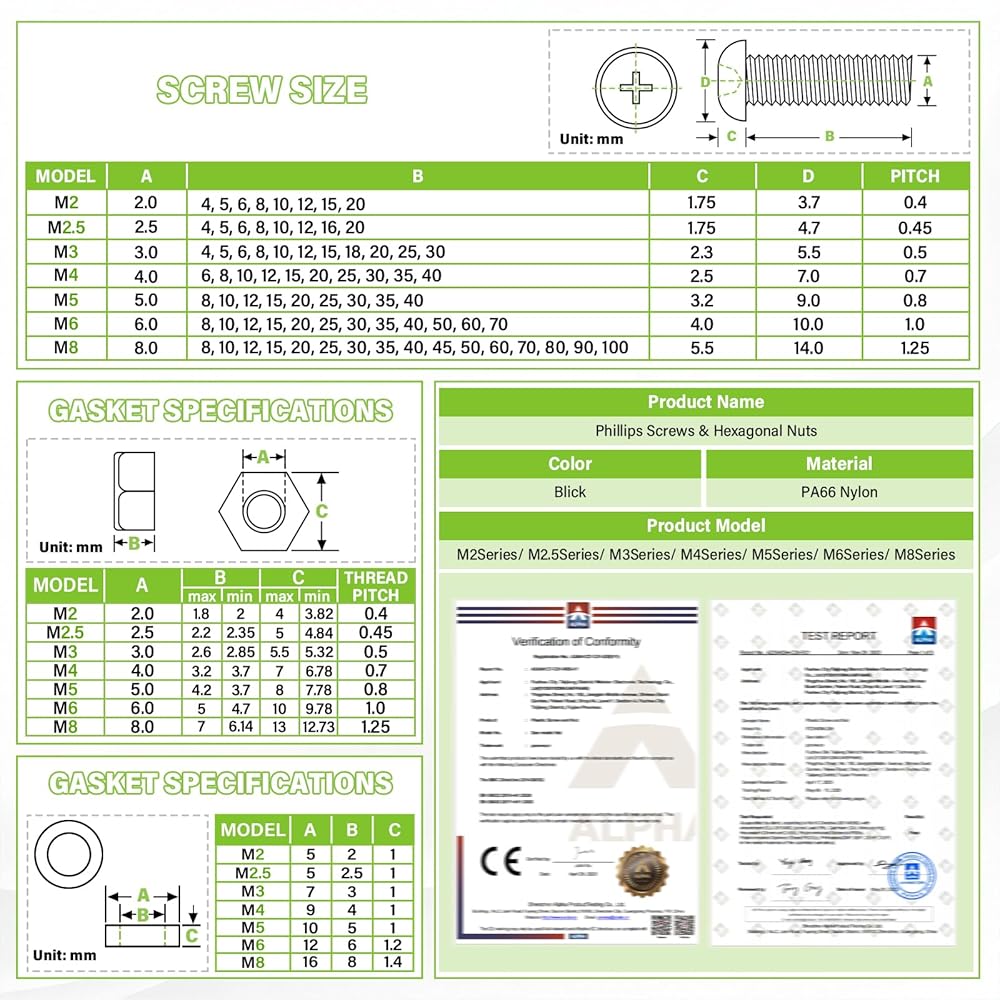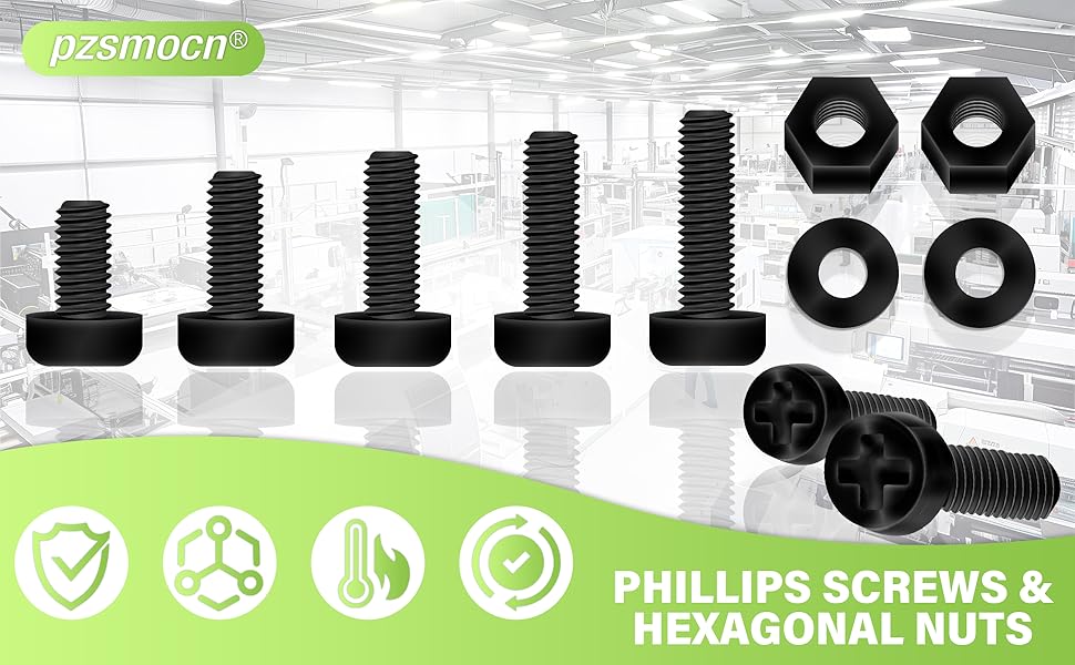 • 90 قطعة / 30 مجموعة من مجموعات البراغي والصواميل مع غسالات، معبأة في صندوق تخزين من مادة البولي بروبيلين لمنع التشتت أو الفقد أثناء الاستخدام، وسهلة التخزين والحمل.