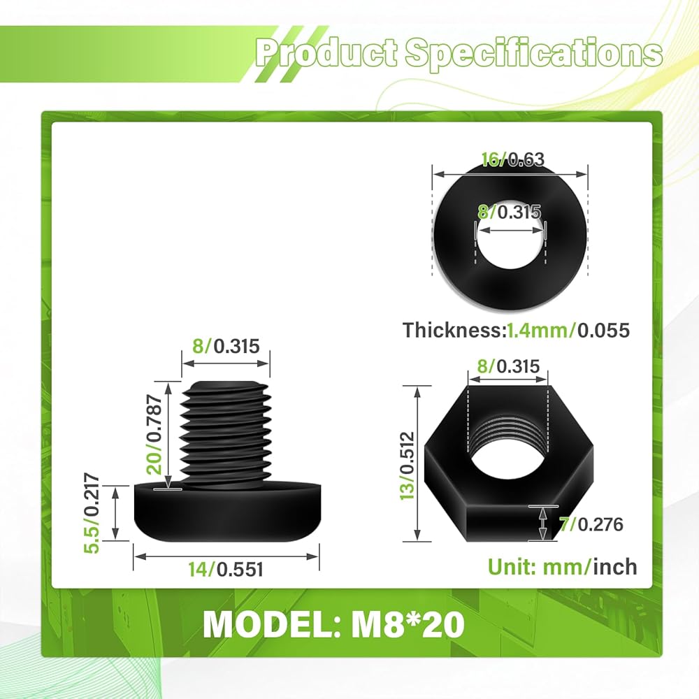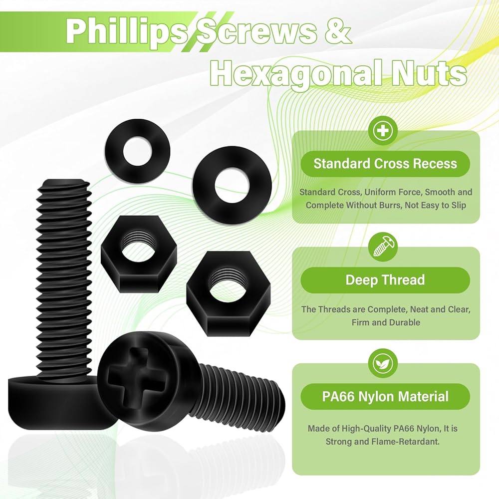 • 30 قطعة من صواميل سداسية بلاستيكية من النايلون الأسود M8 مع 30 قطعة من غسالات عازلة من النايلون؛
