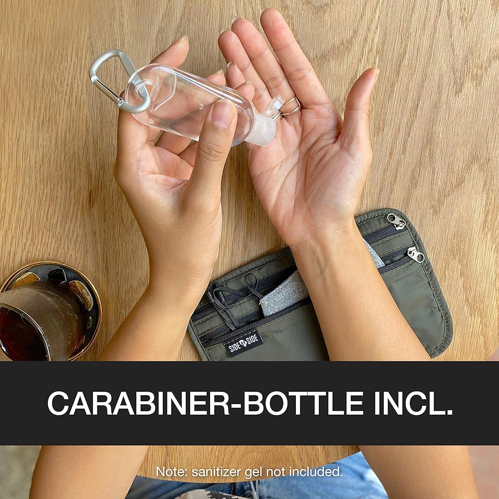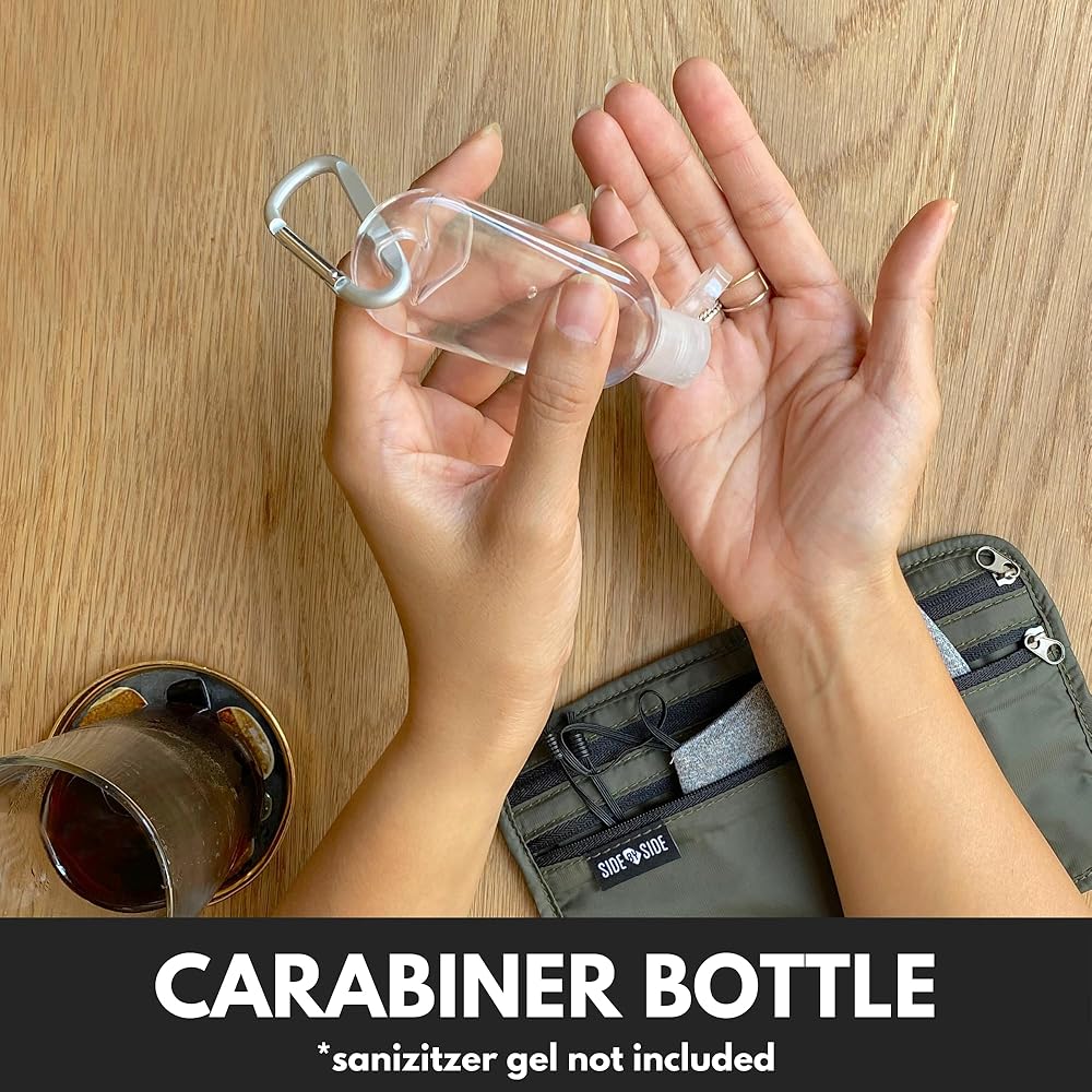 🎁 زجاجة حلقة تسلق مجانية متضمنة: تتميز زجاجة إعادة التعبئة سهلة الاستخدام بتصميم نحيف مصمم ليناسب أي جيب بنطال بسهولة. تأتي مع حلقة تسلق قابلة للفصل في حالة رغبتك في تعليقها لسهولة الوصول إليها. ما عليك سوى فك الغطاء لإعادة تعبئته بجل معقم اليدين الذي تختاره. السعة: 1.01 أونصة (ملاحظة: الجل المطهر غير متضمن).