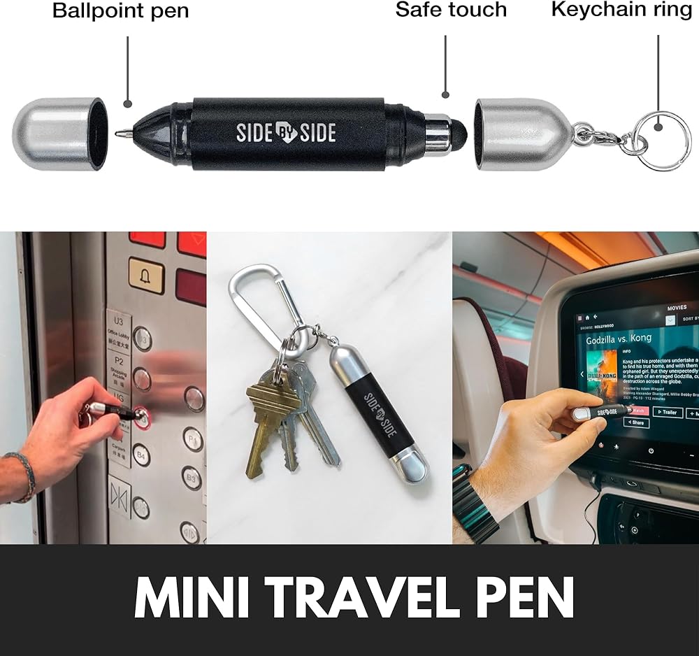 🎁 يتضمن قلم سفر مجاني: سلسلة مفاتيح edc بحجم الجيب مع جانب مطاطي واحد لتقليل جهات الاتصال التي قد تكون غير آمنة عندما تكون في المصعد، باستخدام أجهزة الصراف الآلي، وشاشات اللمس العامة. الجانب الآخر به قلم حبر جاف لملء النماذج الورقية بأمان. تأتي مع حلقة مفاتيح يمكن ربطها بسهولة بمفاتيحك. المواد: ABS، الوزن: 0.015 رطل