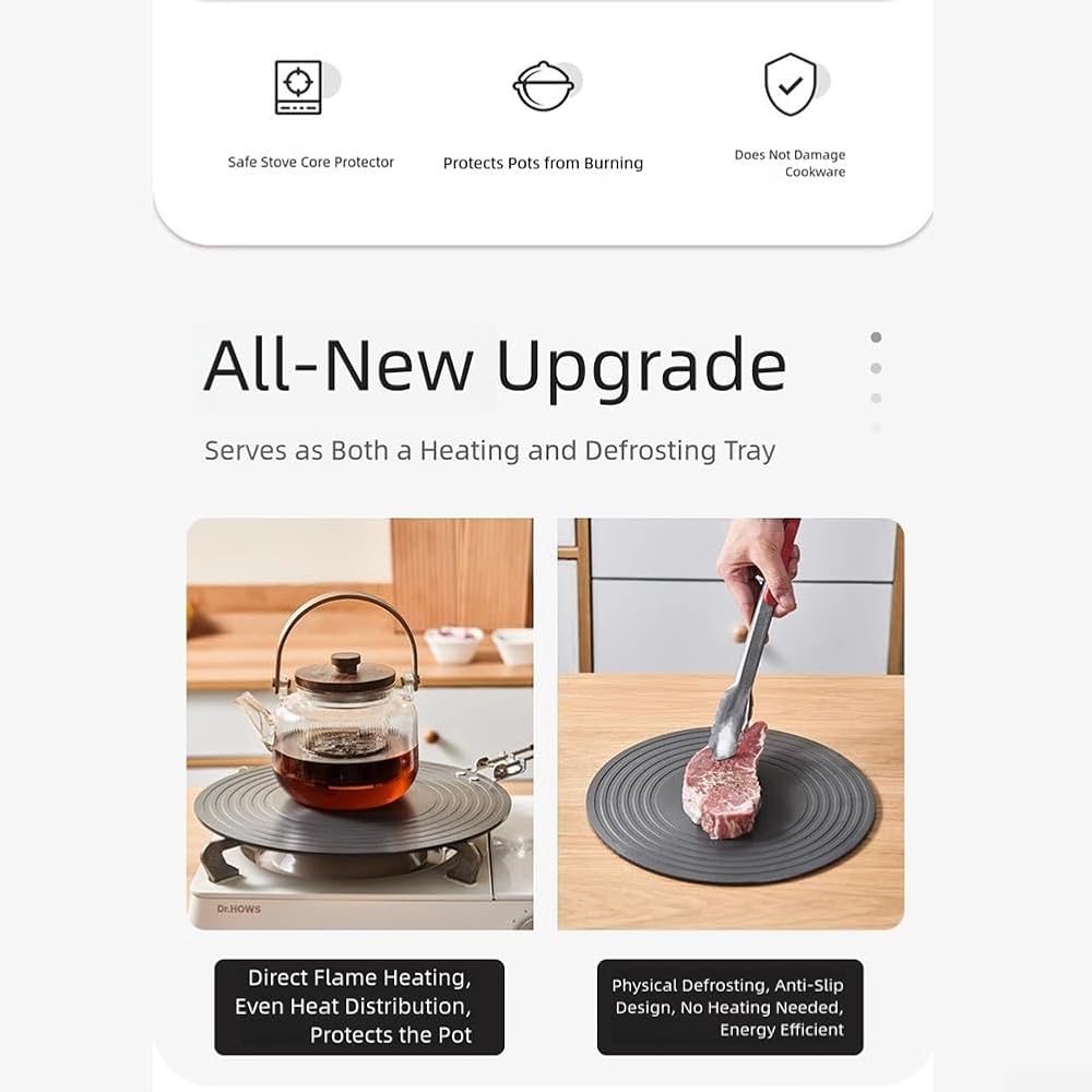*Multi-Functional Utility: More than just a heat-conducting layer—protect your pots from direct flame exposure and enhance efficiency by transforming the plate into a convenient thawing platform as needed.