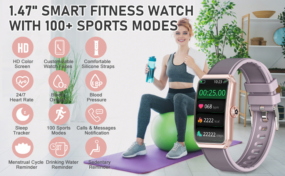 • شاشة لمس مقاس 1.47 بوصة: يتميز جهاز التعقب بشاشة لمس ملونة مقاس 1.47 بوصة مع تصميم إطار نحيف للغاية، ويوفر نسبة موسعة من الشاشة إلى الجسم ووضوحًا أكثر وضوحًا للصورة. يكمل إطارها القوي المصنوع من الفولاذ المقاوم للصدأ أحزمة اللياقة البدنية الصديقة للبشرة بسلاسة، بينما تضمن المجموعة الواسعة من وجوه الساعة النابضة بالحياة جذب الأنظار