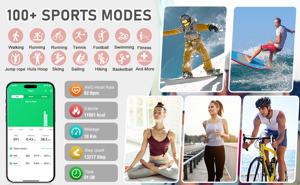 • أكثر من 100 وضع رياضي: تتميز الساعة بأكثر من 100 وضع رياضي، وتوفر دعم البيانات لمجموعة واسعة من الأنشطة البدنية، مما يساعدك في مراقبة أداء تمرينك وتتبع تقدمك.