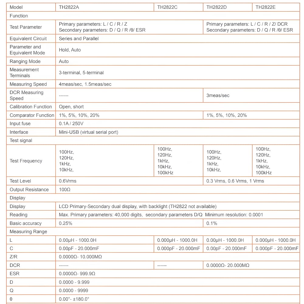 i-POOK - جهاز قياس LCR TH2822A TH2822C TH2822D TH2822E جهاز قياس LCR كهربائي رقمي محمول باليد جهاز اختبار مقاومة السعة والجسر بدقة 0.25% (TH2822D)