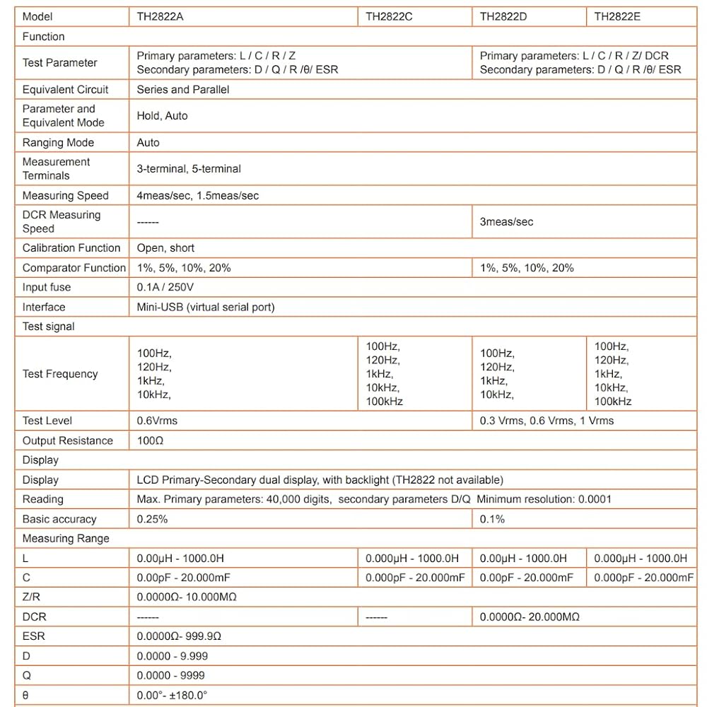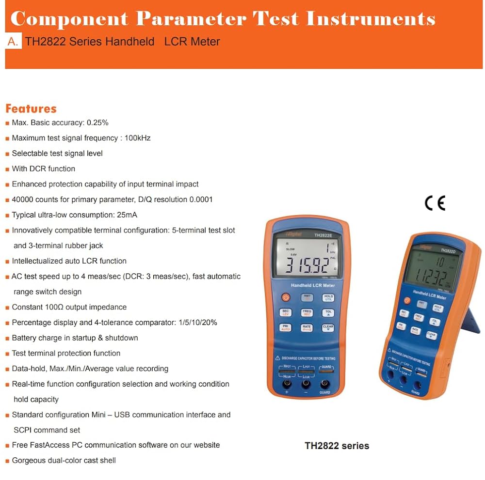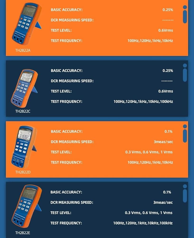 i-POOK - جهاز قياس LCR TH2822A TH2822C TH2822D TH2822E جهاز قياس LCR كهربائي رقمي محمول باليد جهاز اختبار مقاومة السعة والجسر بدقة 0.25% (TH2822A)