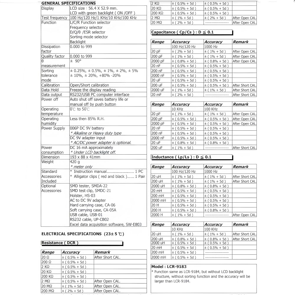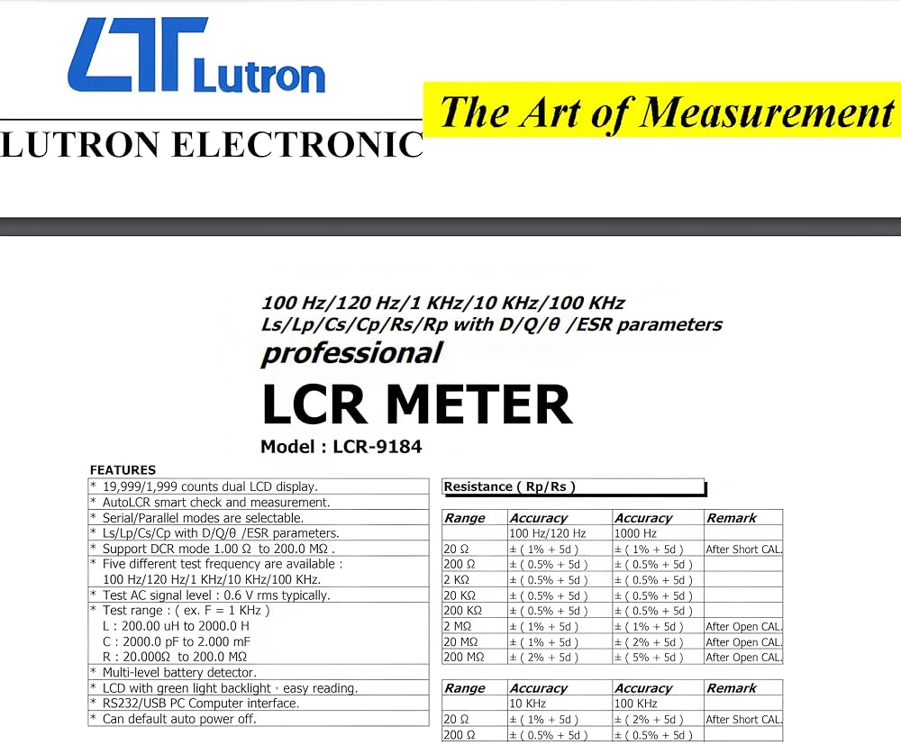 Wide test frequency range: 5 test frequencies: 100Hz, 120Hz, 1KHz, 10KHz and 100KHz