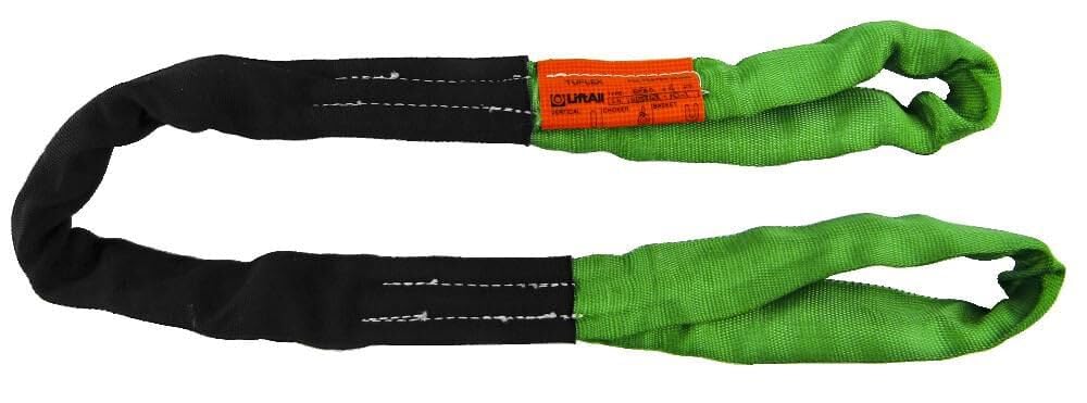 Round Sling, Eye and Eye, Color Code Green, Length 10 ft., Vertical Hitch Capacity 5300 lb., Choker Hitch Capacity 4200 lb., Basket Hitch Capacity 10, 600 lb., Width Under Load 2-1/2 In., Eye Length 10 In., Diameter 7/8 In., Material Polyester/Nylon, Temp. Range -60 to 200 Degrees F, Resists Abrasion, UV Sunlight, Grease and Most Acids, Standards ASME B30.9, OSHA, WSTDA, Includes Tuflex Safety Bulletin Rev 8.11