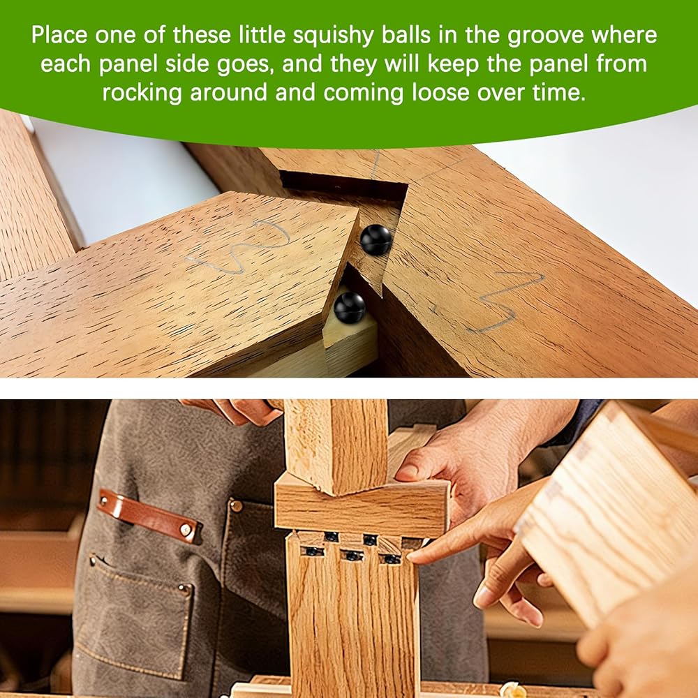 • Easy Fast Installation:Great Space Balls Perfect for Raised Panel Doors.These are essential for padding panels in frame and panel cabinet doors, they ensure that the panel can change size with environmental conditions but not rattle when the door is opened and closed.They are very easy to use, just route the groove for the panel about 1/4" deeper and insert them into the rails and stiles to pad the panel.