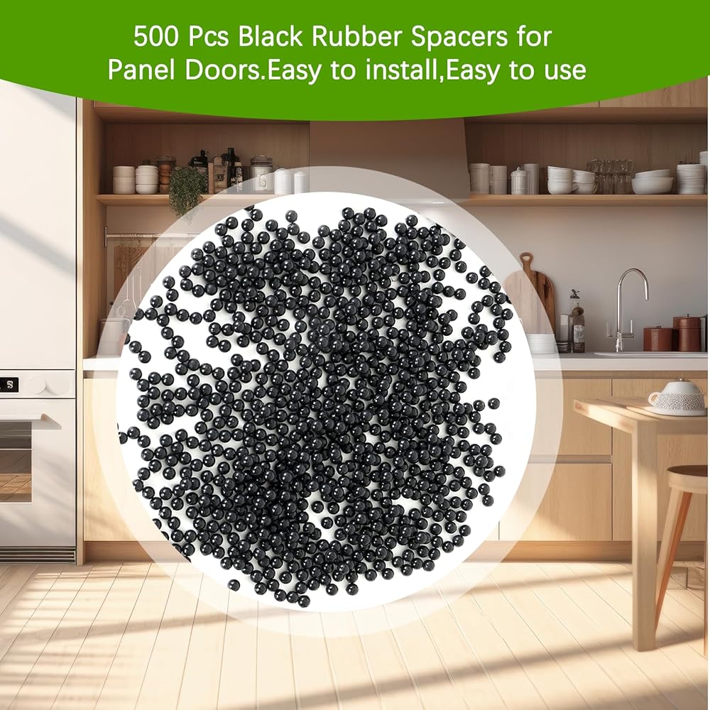 • Rubber Ball Stabilizers:These cabinet door black rubber ball spacers for a 1/4" groove come in a 500-pcs resealable plastic bag.they do measure 0.25" in diameter.These space balls to go in the groove of a cabinet door to keep the door panel from rattling around in the frame.ensuring a secure fit that absorbs stress from wood movement and prevents seam separation