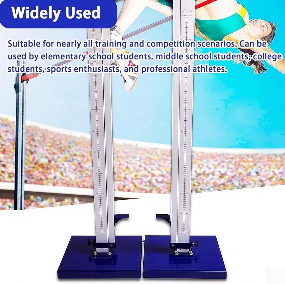 • ●【PRECISE AND CLEAR ADJUSTABLE SCALE】: height-adjustable high jump stand features clear metric scales ranging from 50 (1.64') to 260 (8.5') cm, with 1cm micro-adjustments to aid in scientific training and accurate performance measurement.