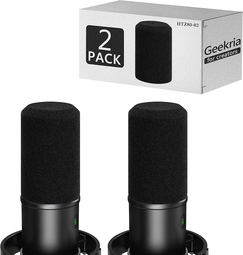 واقي رياح إسفنجي من Geekria for Creators متوافق مع غطاء إسفنجي مضاد للبوب Fifine AmpliGame K688، وغطاء رياح ميكروفون، وفلتر إسفنجي، وواقي أمامي لميكروفون متجمع (أسود / عبوتان)