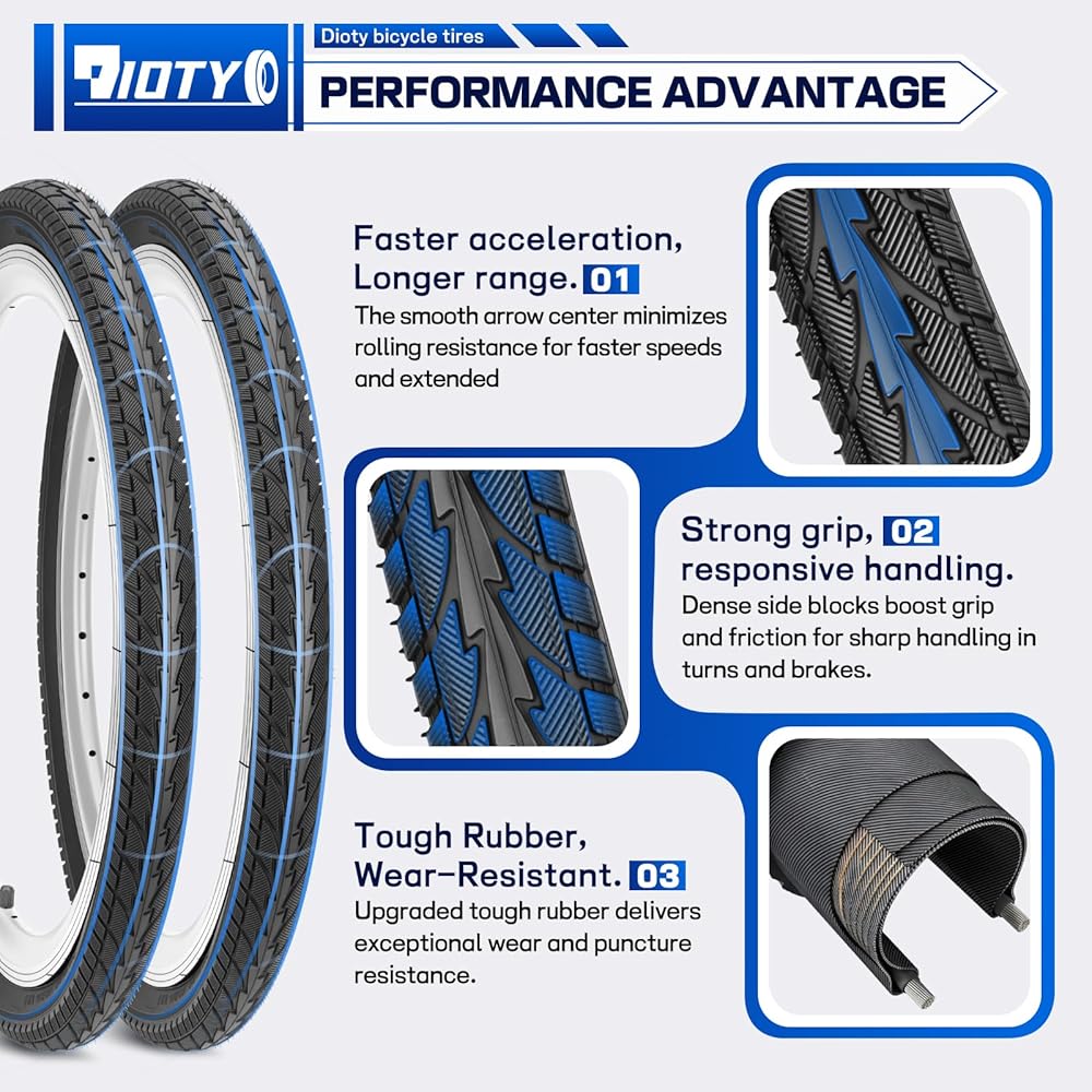 【سهلة التركيب】: تتضمن مجموعة إطارات الدراجة والأنبوب مقاس 20x1.75 رافعتين للإطارات لتسهيل إزالة الإطارات وتركيبها - مثالية للصيانة الدورية أو الاستبدال في حالات الطوارئ. وهذا يجعل العناية بالإطارات خالية من المتاعب للراكبين من جميع مستويات المهارة. يجمع هذا الإطار بين متانة/جر إطار الدراجة الجبلية مع النعومة والتعامل الرشيق لإطار دراجة الطريق، ويتكيف بسهولة مع أسطح الركوب المتنوعة وظروف الطقس لتلبية جميع احتياجات ركوب الدراجات الخاصة بك.
