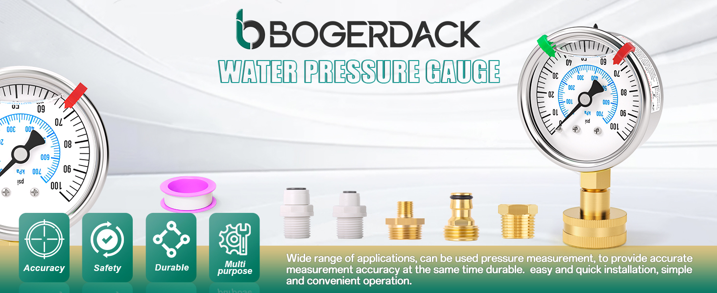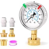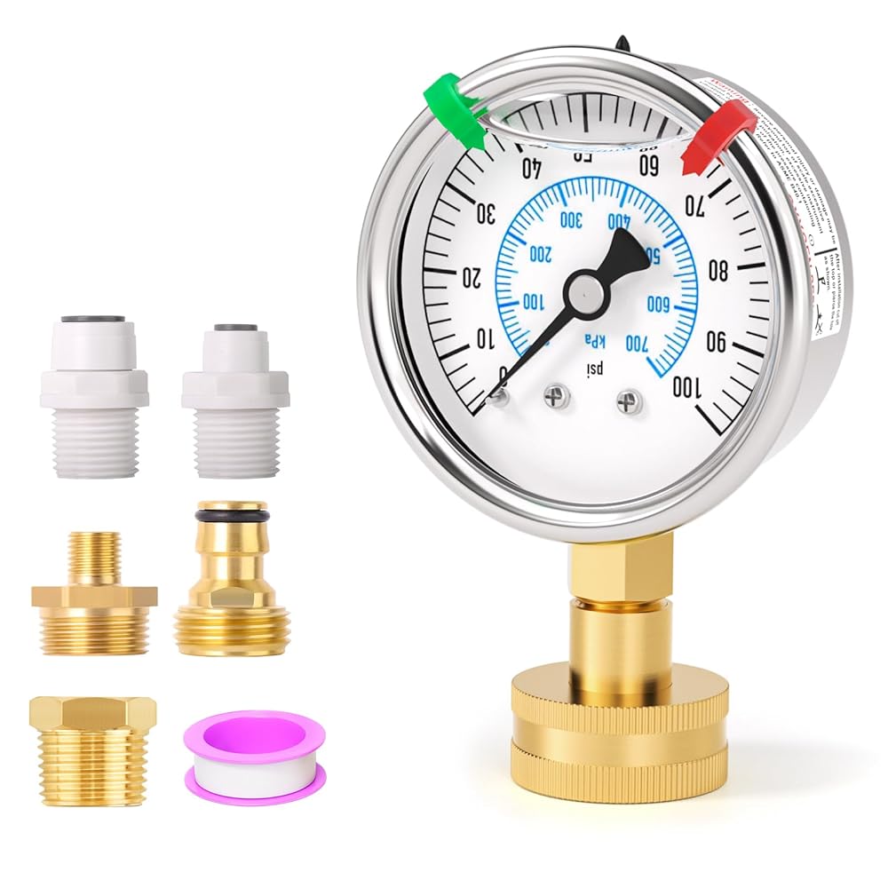 مجموعة قياس ضغط المياه من الفولاذ المقاوم للصدأ 0-100 رطل لكل بوصة مربعة، مقاس 2.5 بوصة، حامل سفلي أنثى نحاسية 3/4 بوصة، مع حلقة إغلاق، بالإضافة إلى 5 محولات، لفحص الحدائق وأنابيب المياه وأنظمة متعددة