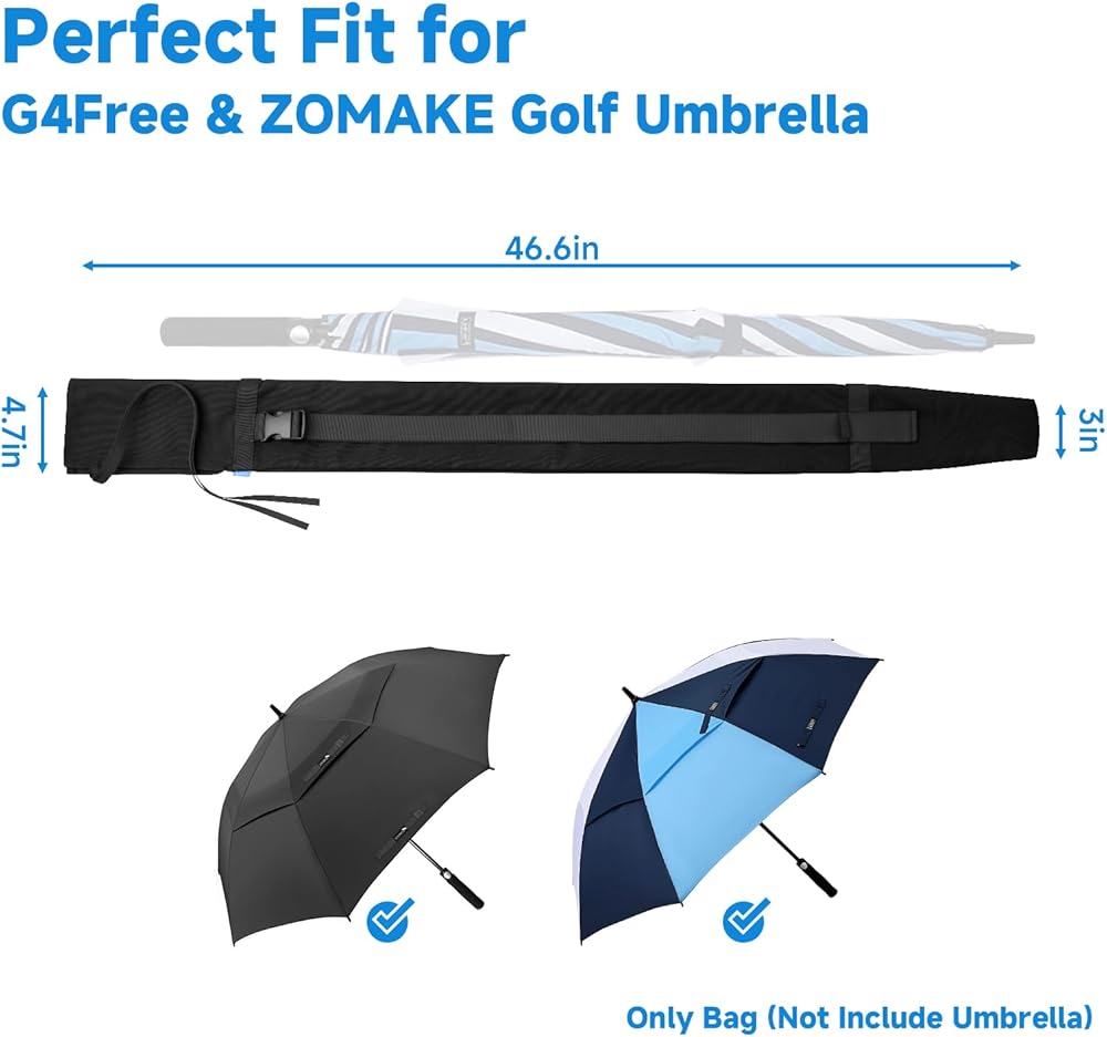 Univeral Golf Umbrella Bag Size: 46.6 inch x4.7 inch, fits for most outdoor golf umbrellas, accommodates all sizes of handheld and personal sized umbrellas, simple to use.