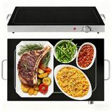 صينية تسخين كهربائية من نيوبوليج مع درجة حرارة قابلة للتعديل، سخان طعام زجاجي مع لوحة تسخين سطحية كاملة، أطباق الغضب سهلة التنظيف للبوفيه والحفلات والمطاعم والاستخدام اليومي