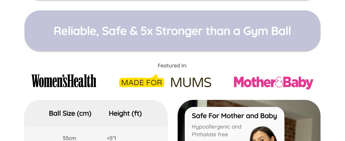 • 📏 See our size guide for the right ball for you. Our ball is made from pregnancy and baby friendly materials, no phthalates and non latex. 5x Stronger than a regular gym ball, be sure to include the BABYGO ball as part of your birth plan.