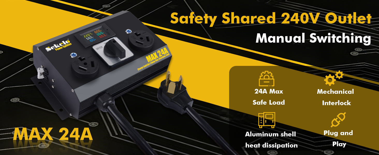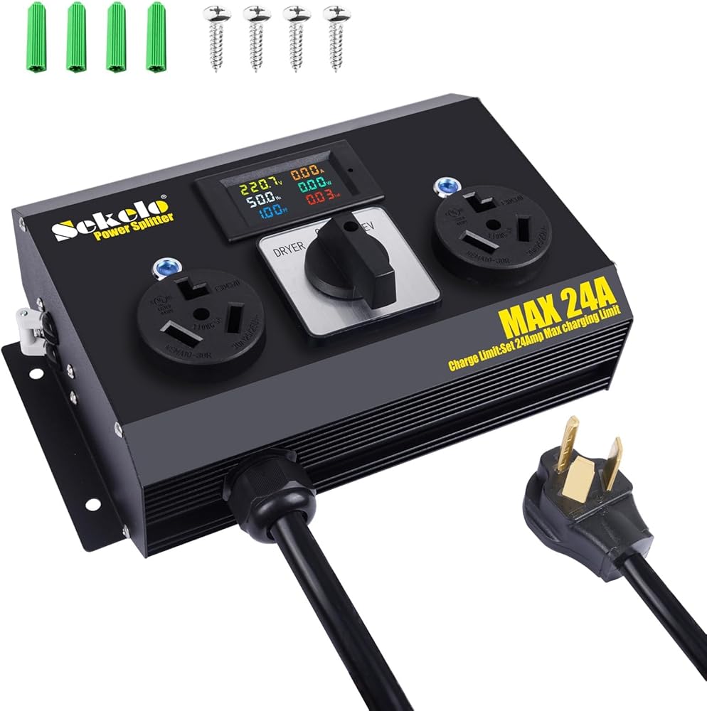 • 【التبديل اليدوي للتوصيل والتشغيل】: يتميز مفتاح Sekelo اليدوي EV بمحدد دوار ميكانيكي قائم على التعشيق، مما يسمح بتشغيل بسيط للقرص مع ضمان تشغيل منفذ واحد فقط في كل مرة. لا توجد أسلاك أو إلكترونيات معقدة - ما عليك سوى توصيل المجفف وشاحن السيارة الكهربائية، ثم التبديل يدويًا حسب الحاجة.