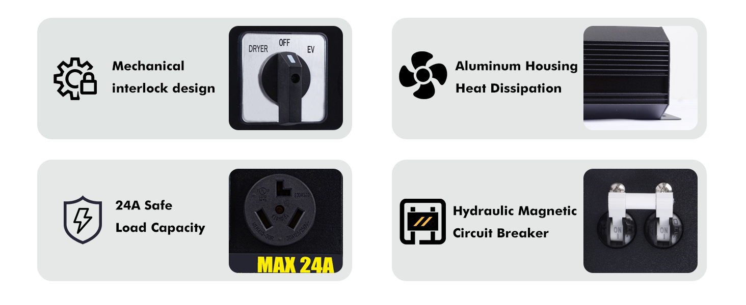 • 【توافق واسع】: هذا المفتاح اليدوي متوافق مع مختلف المركبات الكهربائية والمجففات. إنه يعمل مع أي منفذ NEMA 10-30، مما يضمن التكامل السلس في نظامك الحالي دون تعديلات إضافية، مما يجعله خيارًا مثاليًا للاستخدام المنزلي المتنوع.