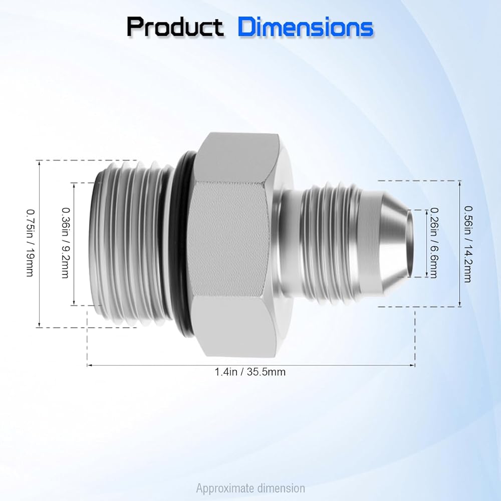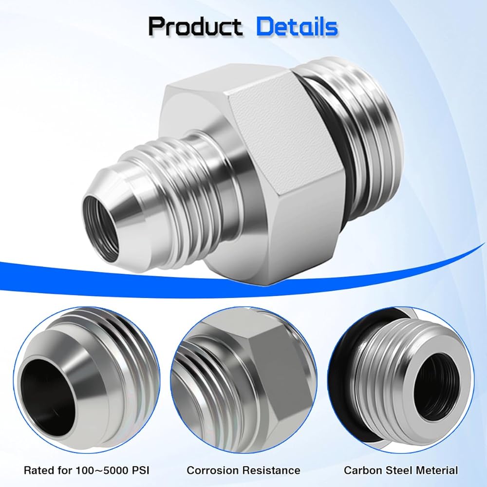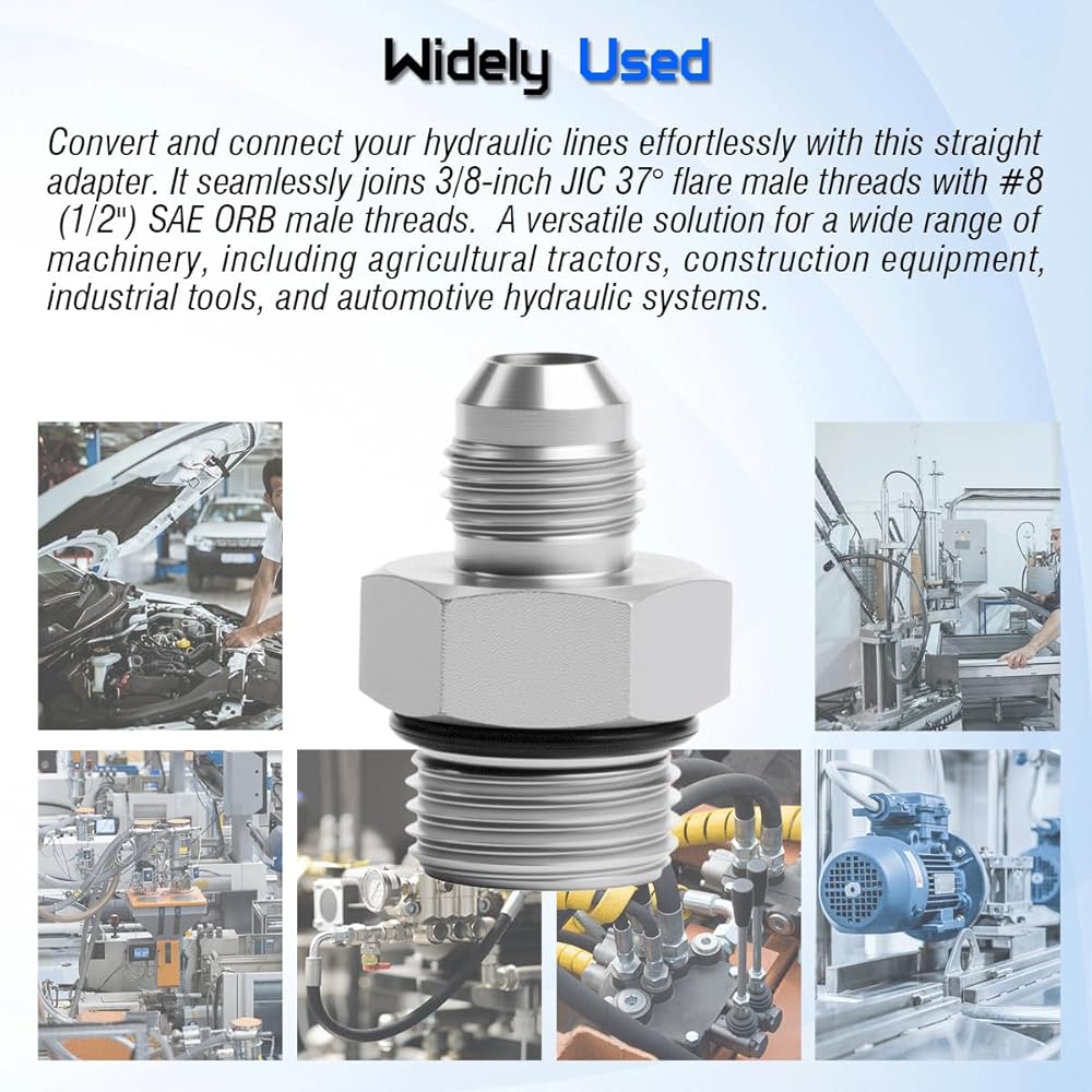 【Superb Compatibility】Convert and connect your hydraulic lines effortlessly with this straight adapter. It seamlessly joins 3/8-inch JIC 37° flare male threads with #8 (1/2") SAE ORB male threads. Perfect for creating leak-free connections between JIC and O-ring boss system components.
