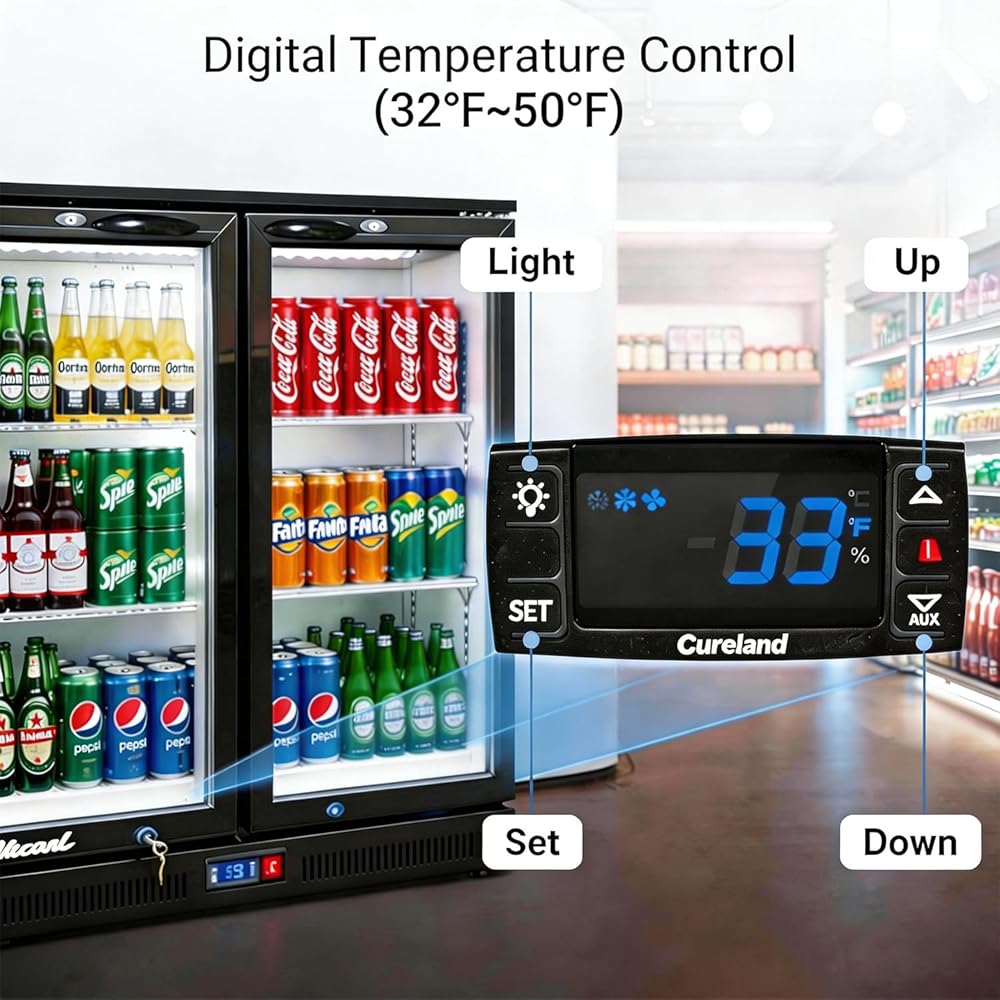 ثلاجة تبريد بار خلفي، ثلاجة بيرة تجارية مدمجة بحجم 7 قدم مكعب، ثلاجة مشروبات تحت الطاولة، ثلاجة عرض مع أرفف قابلة للتعديل بإضاءة LED، موافقة ETL وNSF، باب منزلق
