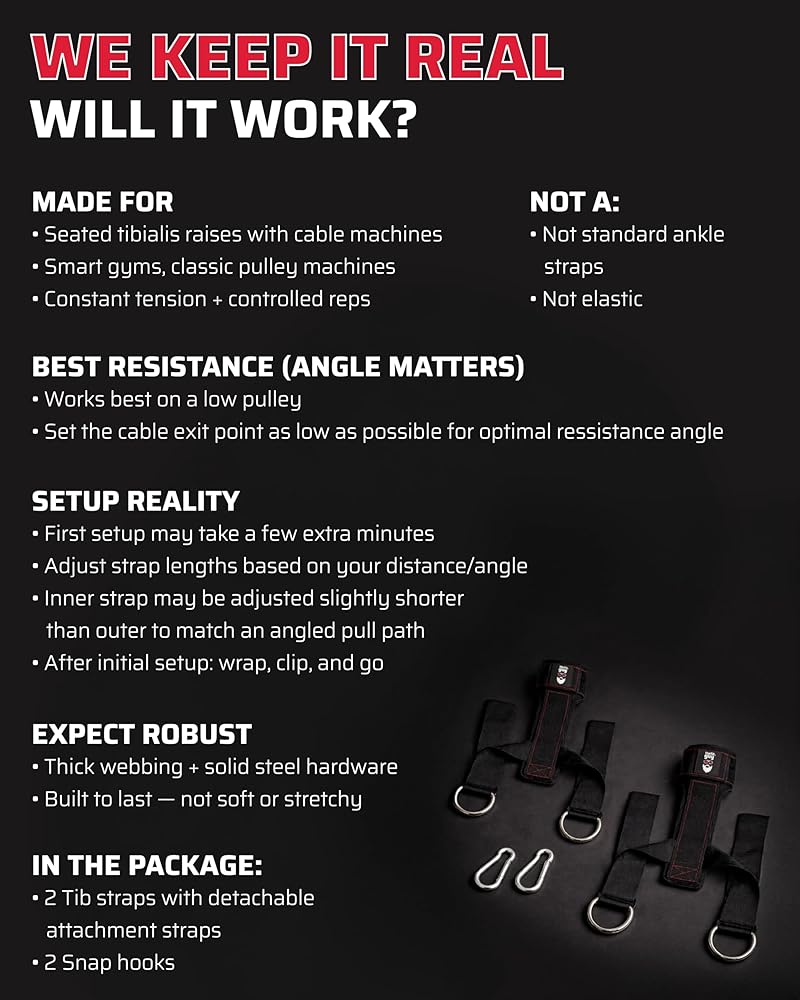 بديل Tib Bar لآلات الكابلات - قم بإجراء رفعات الظنبوب الموزونة دون الحاجة إلى شريط Tib مخصص. أضف المقاومة بسهولة باستخدام جهاز الكابل الخاص بك