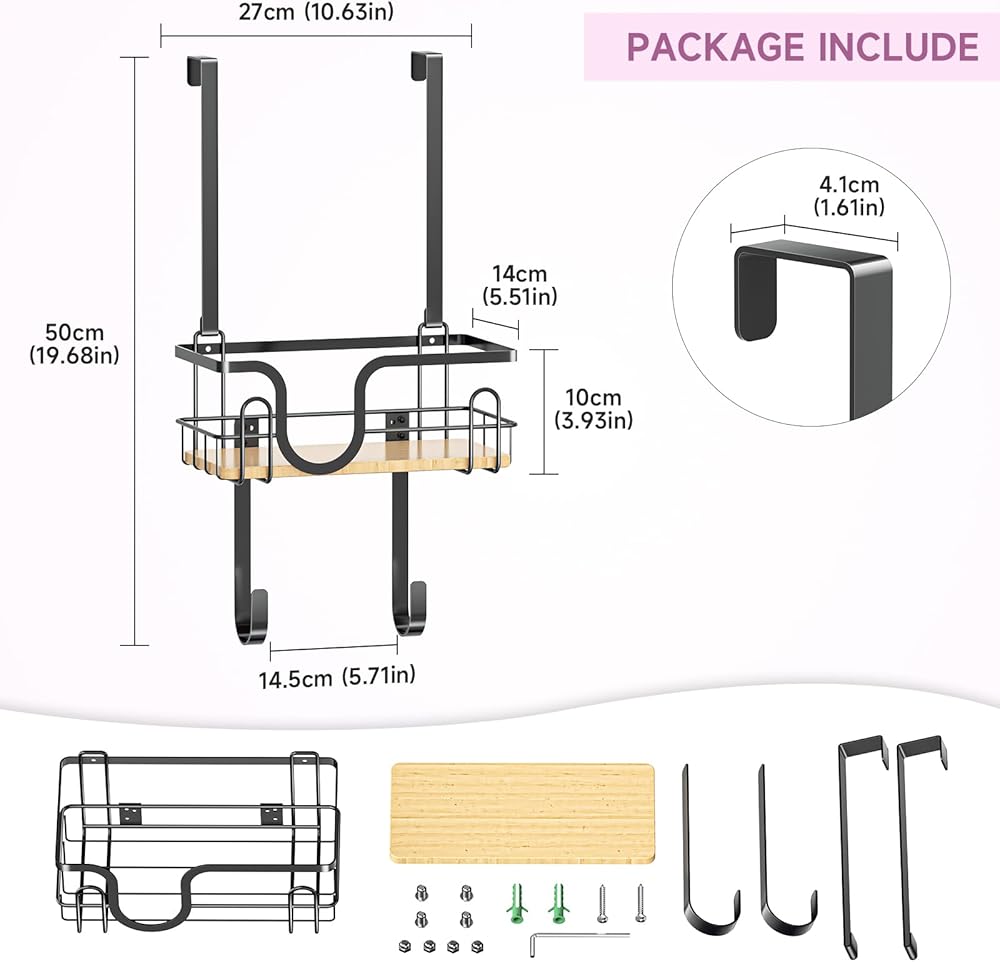 【متينة وعملية】: شماعة طاولة الكي الموجودة فوق الباب مصنوعة من معدن فاخر. يضمن البناء عالي الجودة متانته وموثوقيته التي يمكن أن تتحمل وزنًا يصل إلى 30 رطلاً. تحتوي على سلة متينة، كما أن عمق وعرض السلة المصممين جيدًا يعدان رائعين لتخزين المكاوي وزجاجات الرش وما إلى ذلك. وتمنع حوافها انزلاق العناصر. تعتبر هذه العلاقة العملية للمكواة وطاولة الكي إضافة أساسية لأي منزل.