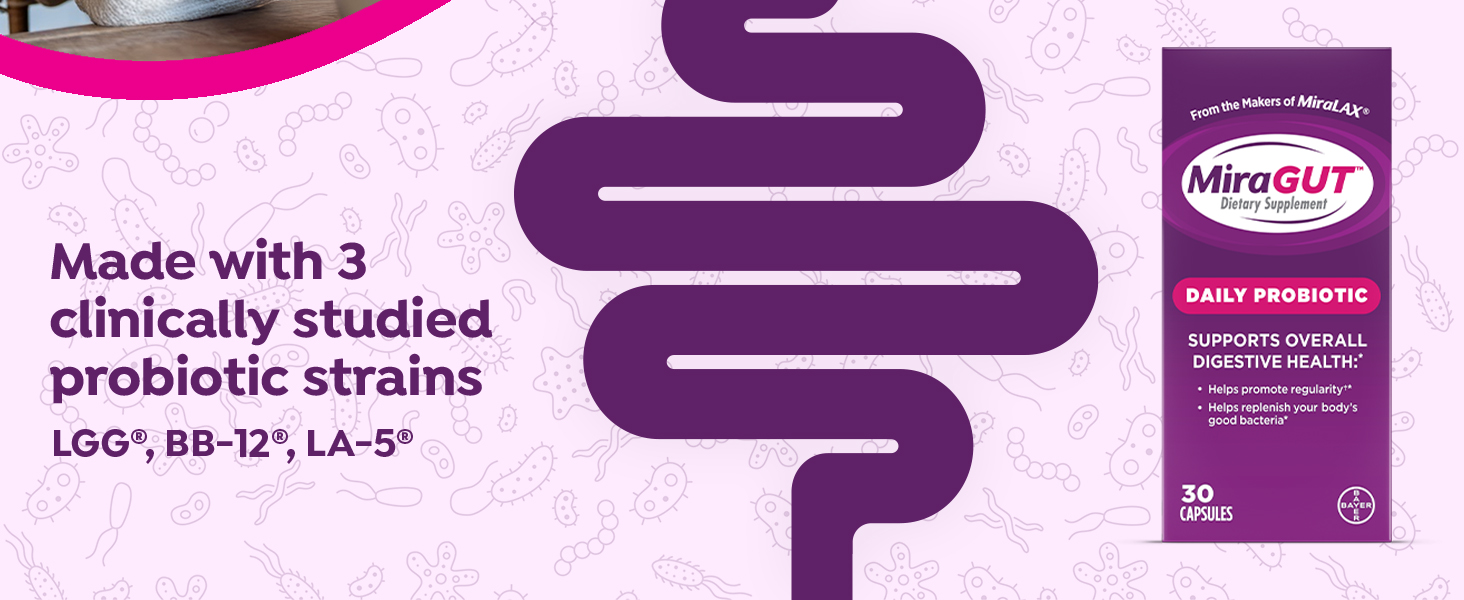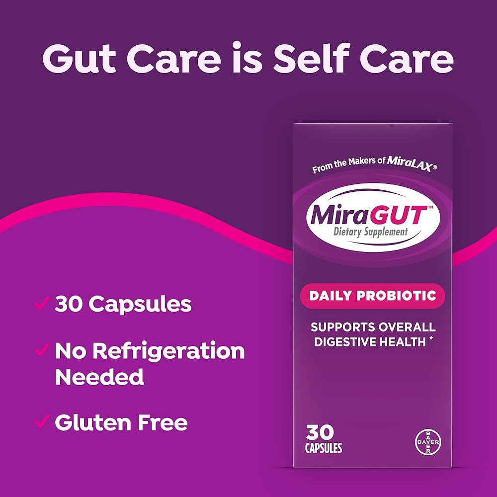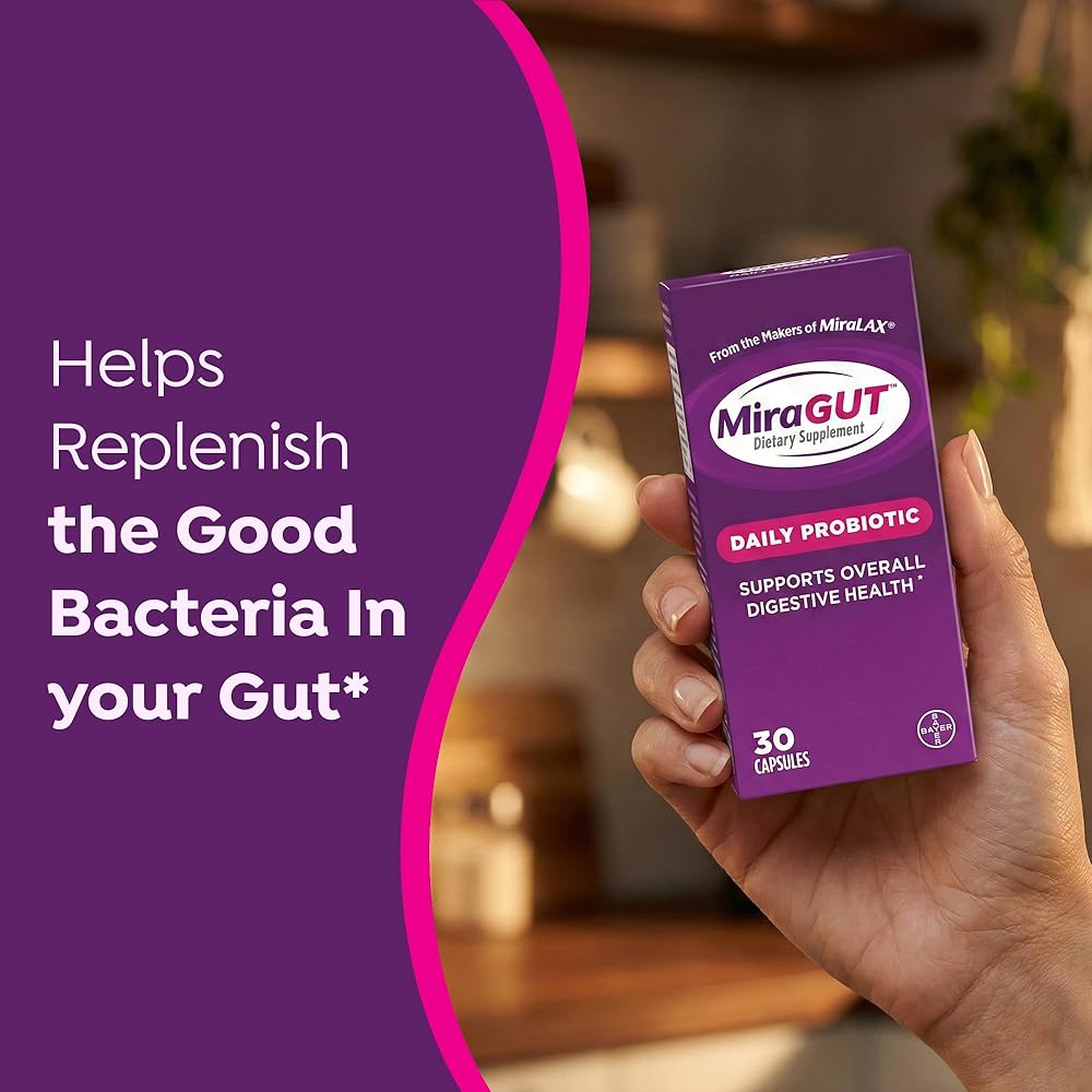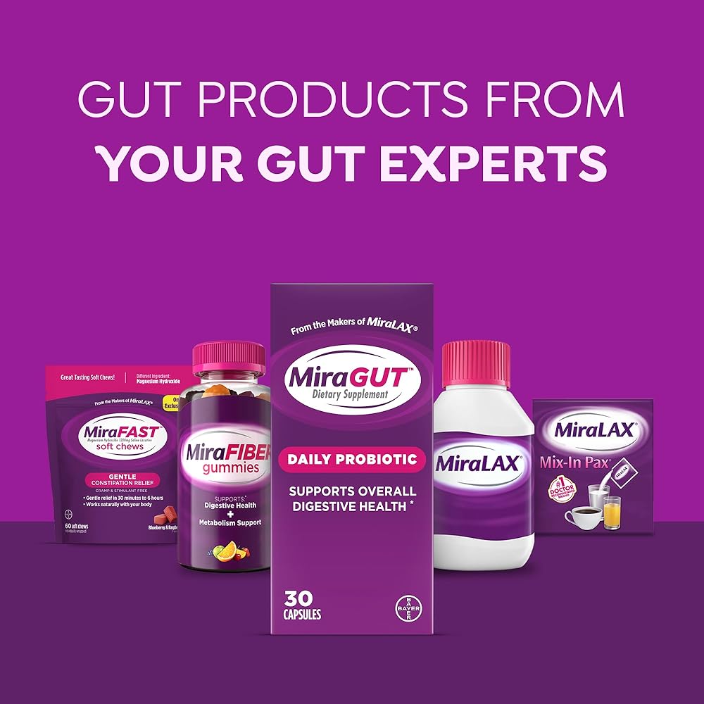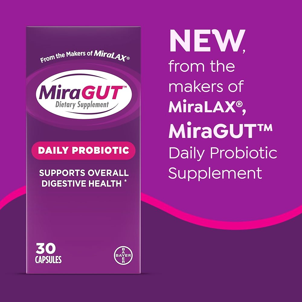 Gut Products From Your Gut Experts: From the makers of MiraLAX, MiraGUT probiotics is a 30-day supply to help support digestive health and replenish the good bacteria in your gut*