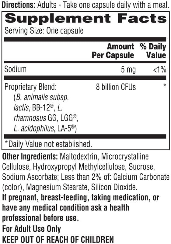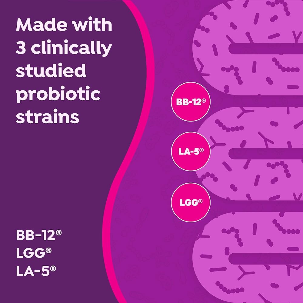 Supports Gut Balance*: Made with 3 clinically studied probiotic strains, B. animalis subsp. Lactis(BB-12), L. rhamnosus GG(LGG), L. acidophilus(LA-5), it helps replenish your body's good bacteria to support a more balanced gut*