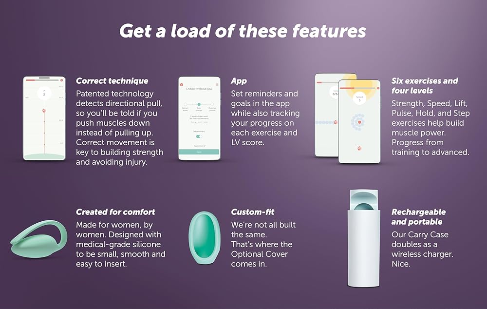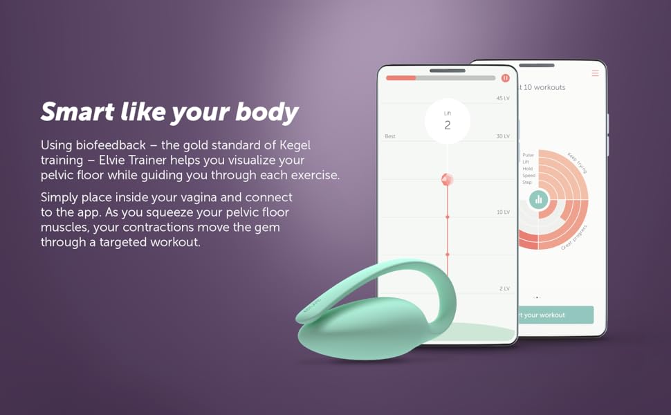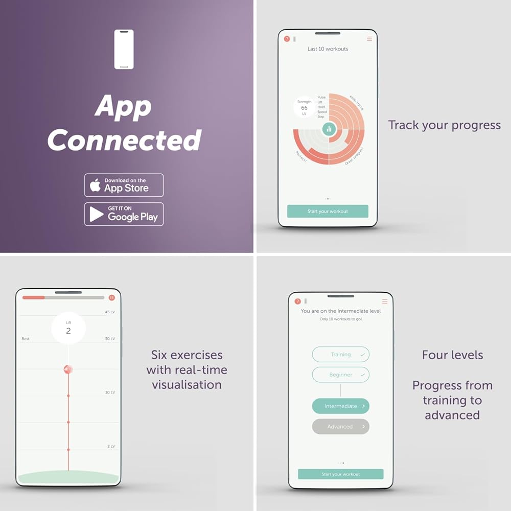 التكنولوجيا الذكية: يمكنك رؤية حركات قاع الحوض في الوقت الفعلي وتتبع تقدمك بمرور الوقت عبر تطبيق Elvie Trainer. سوف ترشدك تقنيتنا خلال التدريبات الخاصة بك مما يضمن صحة أسلوبك ورؤية النتائج بسرعة.