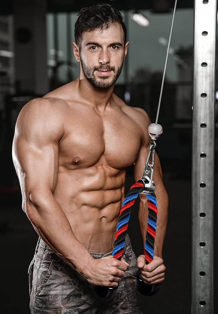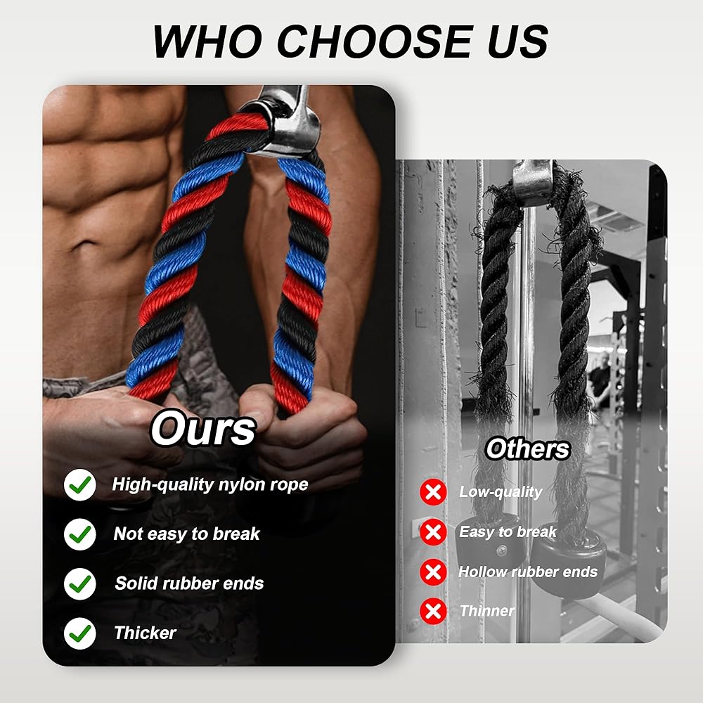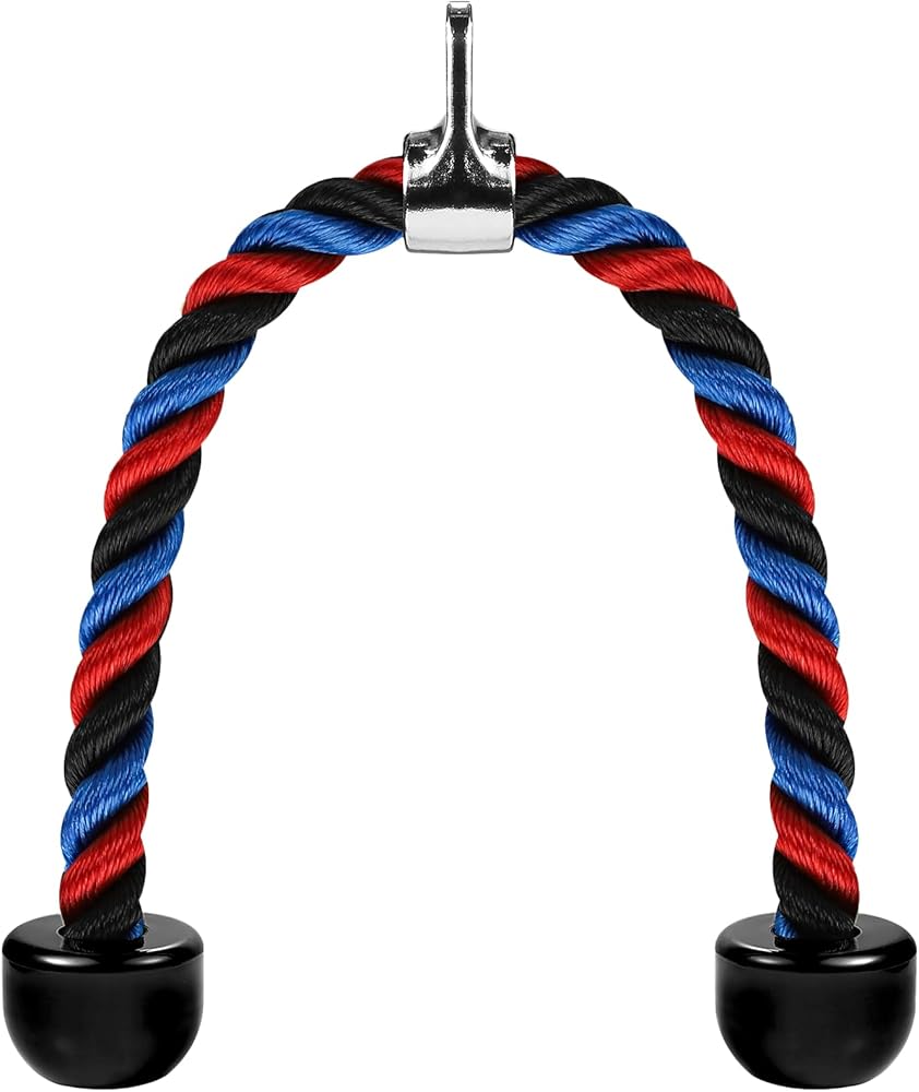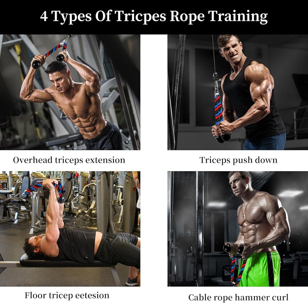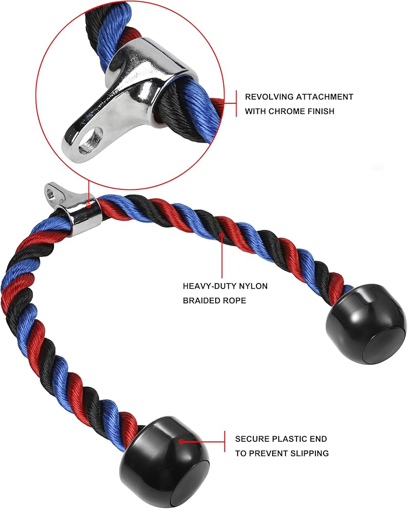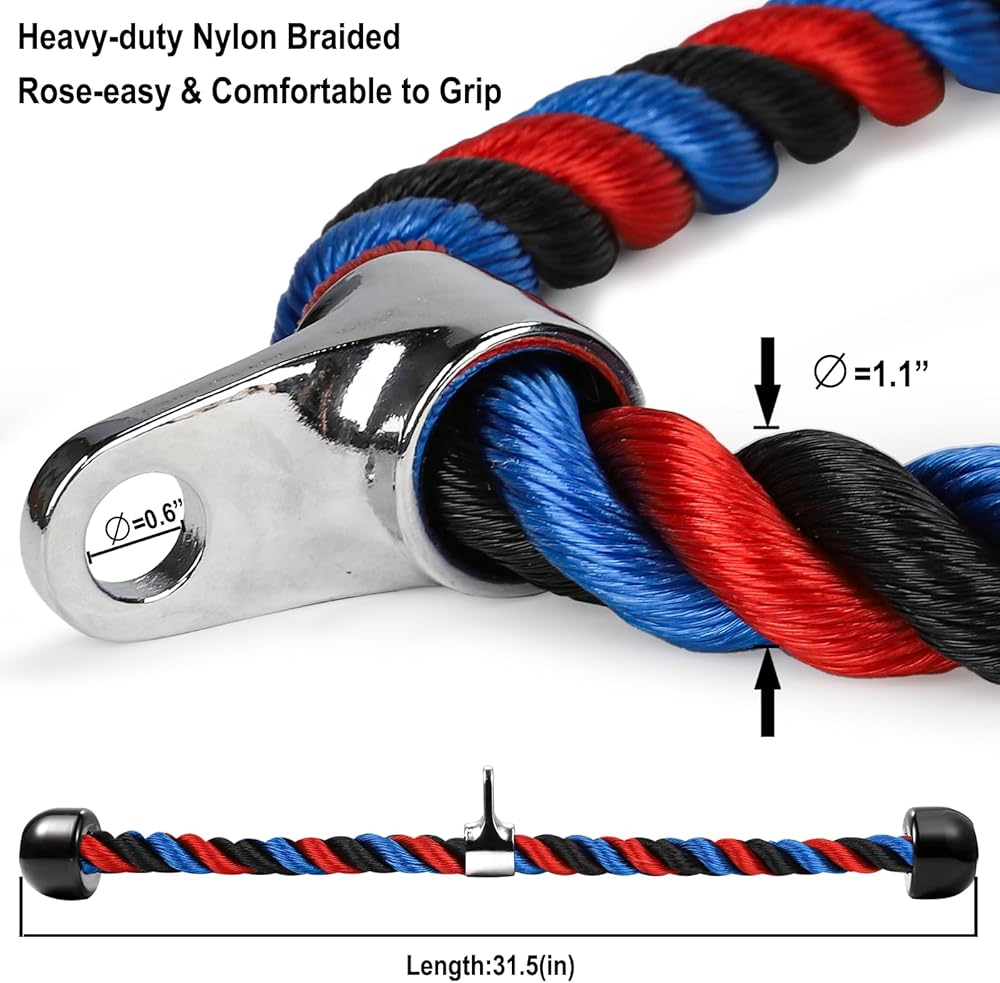 حبل ثلاثي الرؤوس فاخر لصالة الألعاب الرياضية مرفق كابل سحب للأسفل، طول حبل 31.5 بوصة، سهل الإمساك ومرفقات سحب للأسفل غير قابلة للانزلاق، حبل للتمرين