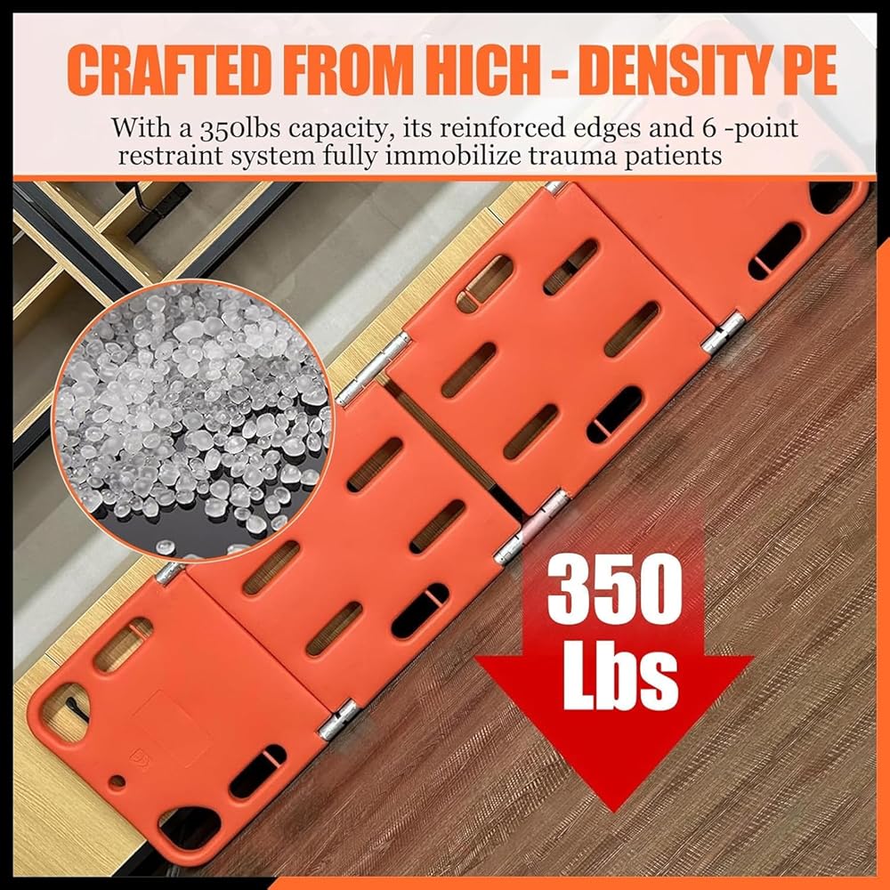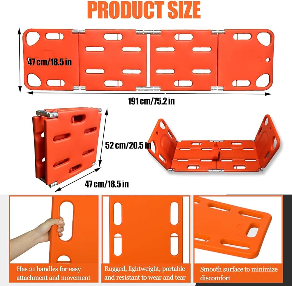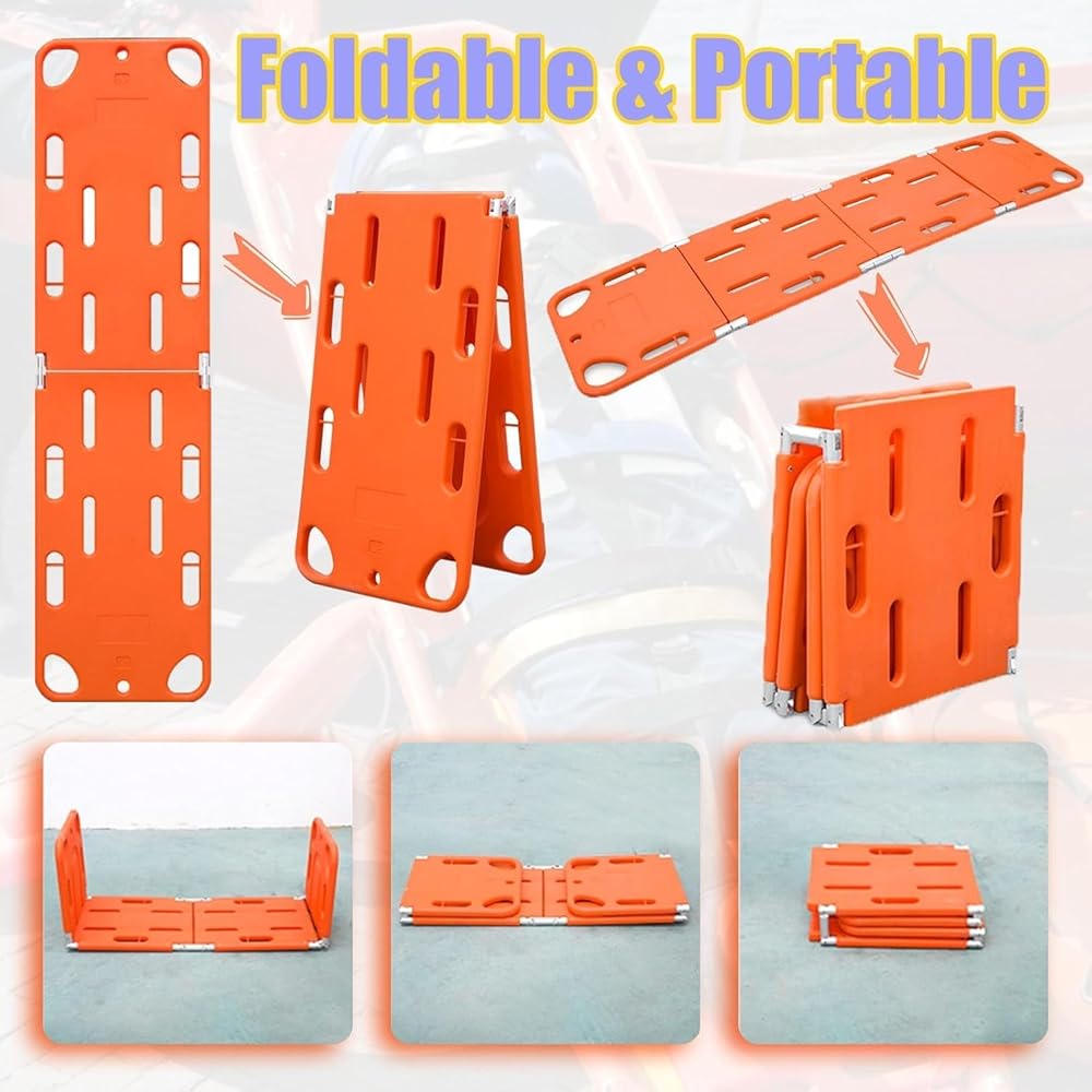 • [Foldable Design]: Featuring a foldable design, this spinal board can be quickly unfolded and folded for time efficiency. Ideal for storage in emergency vehicles, ambulances, helicopter cabins, and offshore rescue boats