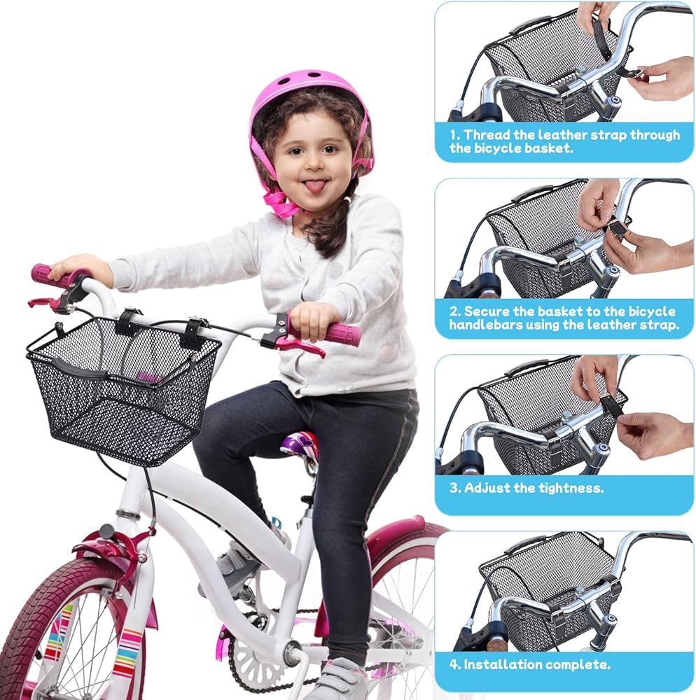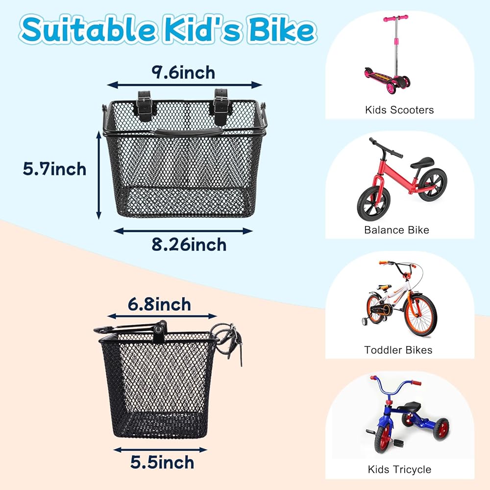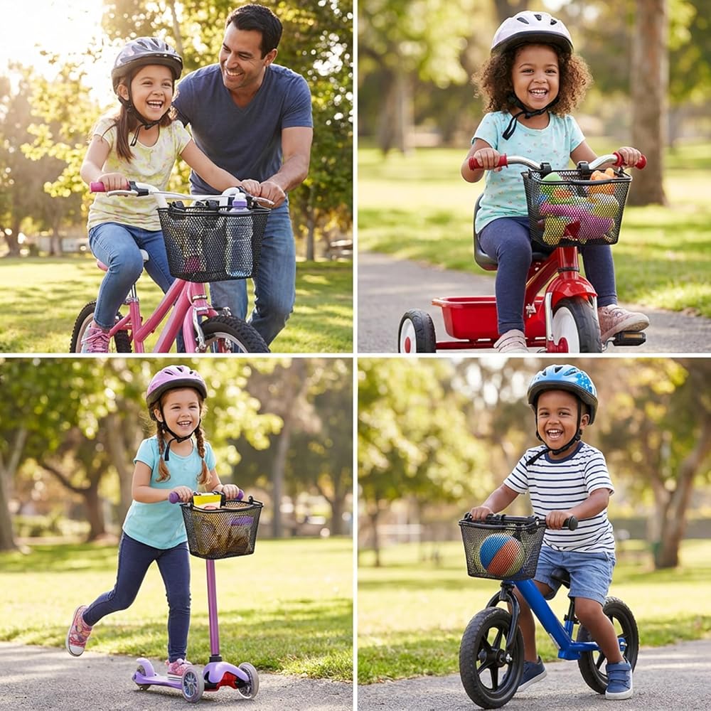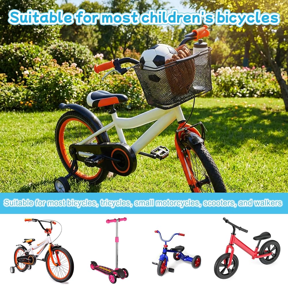 متوافقة مع معظم دراجات الأطفال - هذه السلة الأمامية المعدنية تناسب معظم دراجات الأطفال والدراجات ثلاثية العجلات والدراجات البخارية. تركيب بدون أدوات يناسب الأولاد والبنات من مختلف الأعمار، مما يضيف المتعة والعملية إلى الركوب. يساعد الأطفال على تنظيم متعلقاتهم مع تعزيز المظهر الجمالي للدراجة، مما يجعلها هدية مثالية للأطفال الذين يحبون ركوب الدراجات في الهواء الطلق.