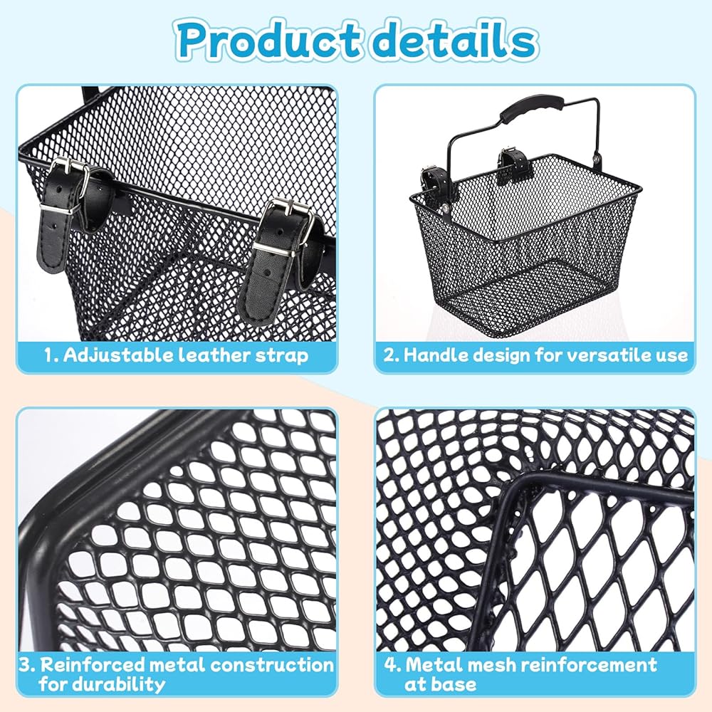 تصميم صديق للأطفال - الحواف الشبكية السلكية لسلة الدراجة مستديرة وناعمة، وتمنع بشكل فعال الخدوش والإصابات العرضية لضمان الاستخدام الآمن للأيدي الصغيرة. يسمح الهيكل الشبكي المفتوح برؤية المحتويات بسهولة، بينما تتسع مساحة التخزين الواسعة للألعاب والمفاتيح والوجبات الخفيفة وزجاجات المياه والمزيد لتلبية الاحتياجات المختلفة.