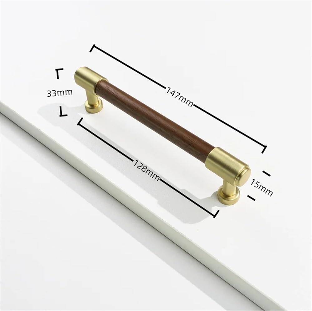 الجوز الأسود مقابض خشبية درج أثاث المطبخ الذهبي خزائن الباب مقبض نحاسي الأجهزة 1 قطعة (6-C128mm)