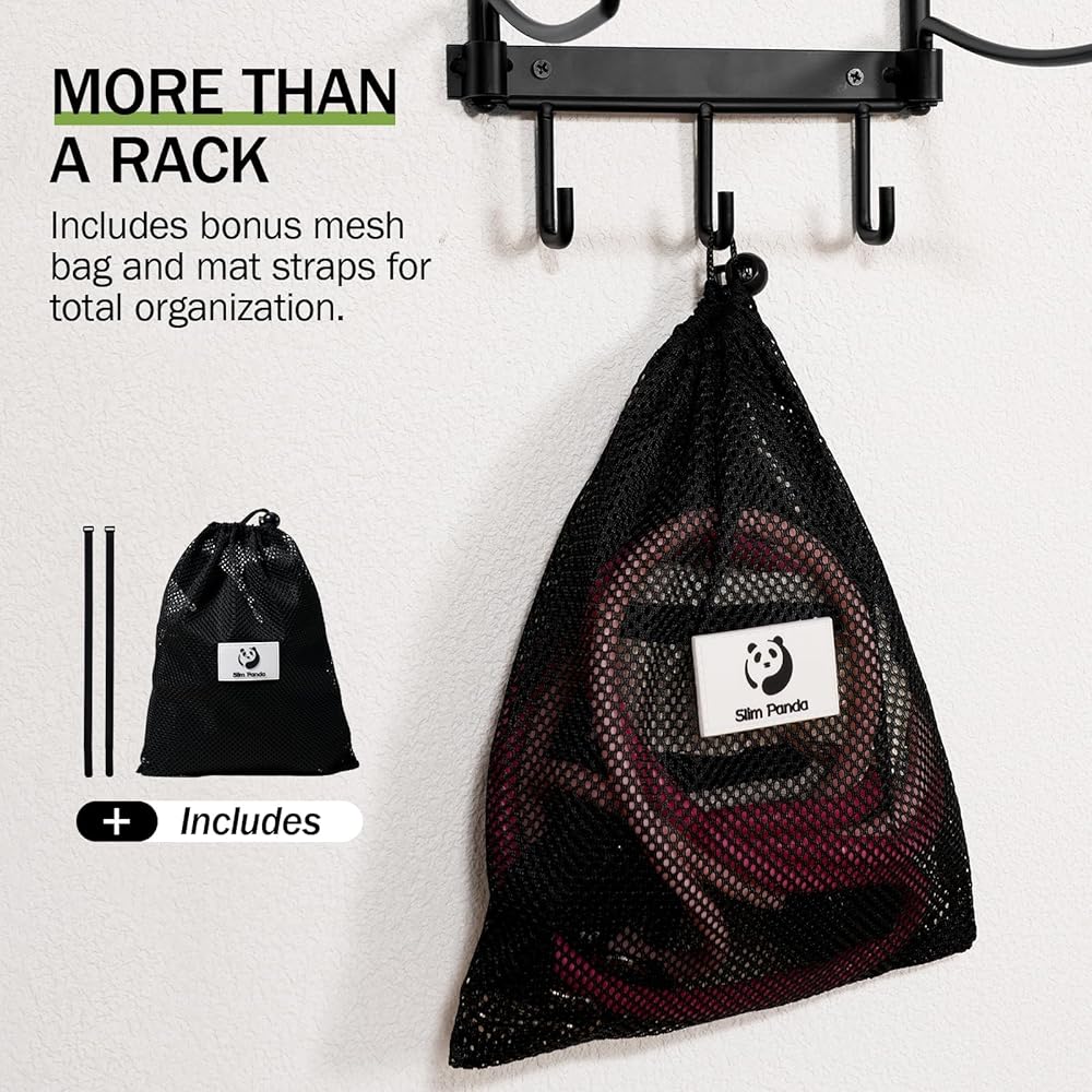 حقيبة شبكية متعددة الوظائف واختيار مثالي للهدايا: يأتي حامل سجادة اليوجا المثبت على الحائط مع حقيبة شبكية رائعة متعددة الوظائف، والتي يمكن أن تلبي احتياجاتك لتخزين ملحقات اليوجا المتنوعة وأيضًا لعب دور زخرفي رائع، مما يجعل حامل حائط سجادة اليوجا المعبأ بشكل جميل خيارًا مثاليًا للهدايا.