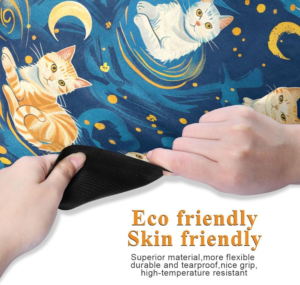 Non-Slip Fitness Mats: Suede & Natural Rubber. They are truly healthy and recyclable. Absorb sweat quickly. Ideal for your hot yoga, pilates, bikram, family picnic, and kids' play mats. Moreover, you can have a rest after exercise.