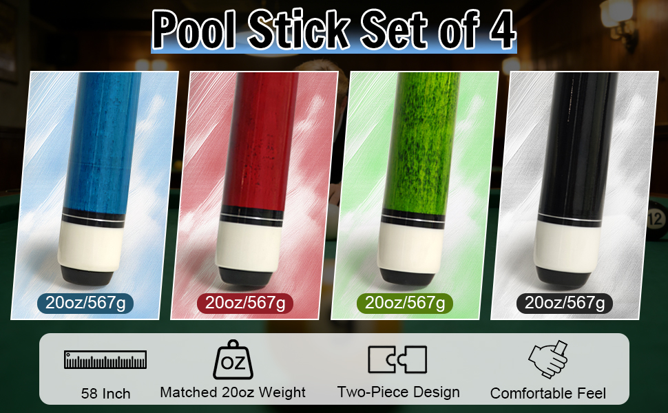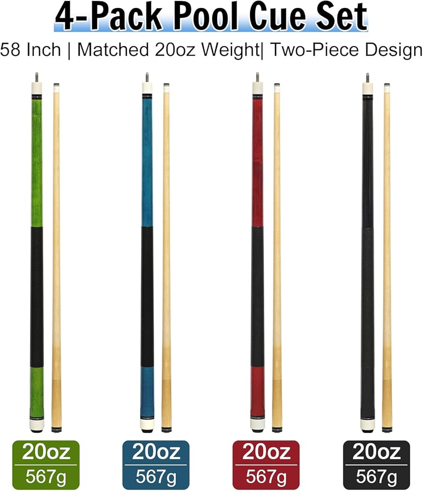 【مجموعة من 4 عبوات للعب في المنزل والبار】 تتضمن أربعة أعواد حمام السباحة مقاس 58 بوصة، كل منها متطابقة بوزن 20 أونصة لتوفير توازن ثابت وشعور موحد عبر المجموعة - مثالية لغرف الألعاب المنزلية والحانات والنوادي واللعب الترفيهي المشترك.