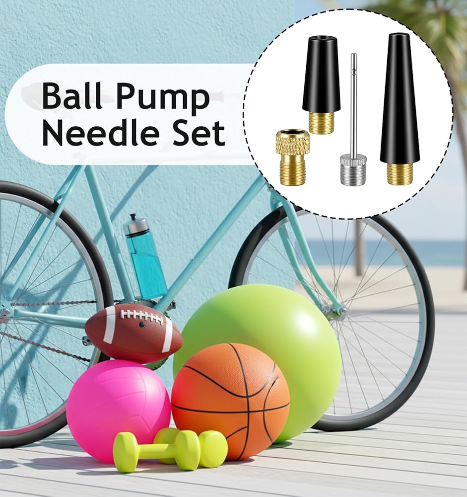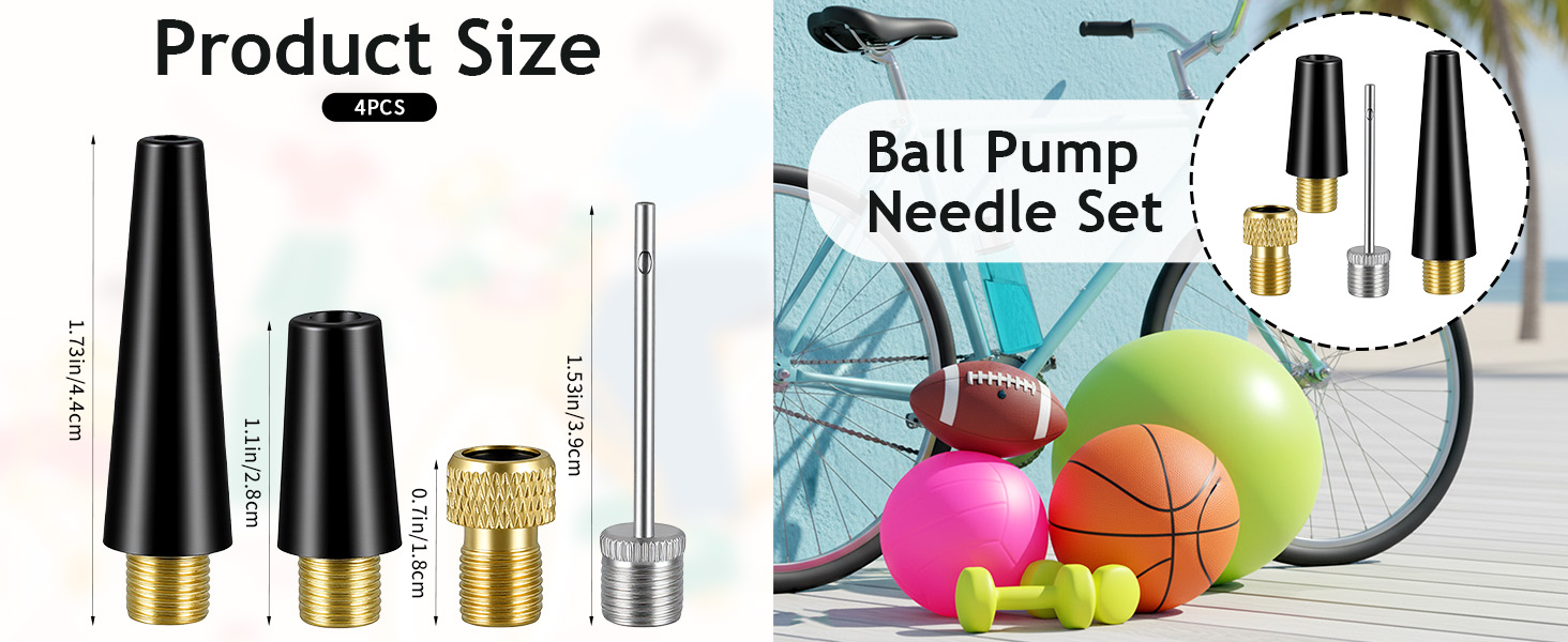 • مريحة أثناء الحمل - تأتي إبر المضخة الخاصة بنا في مجموعة مدمجة مكونة من 4 قطع خفيفة الوزن وسهلة التخزين في حقيبة صالة الألعاب الرياضية أو صندوق الأدوات من أجل نفخ سريع أثناء التنقل.