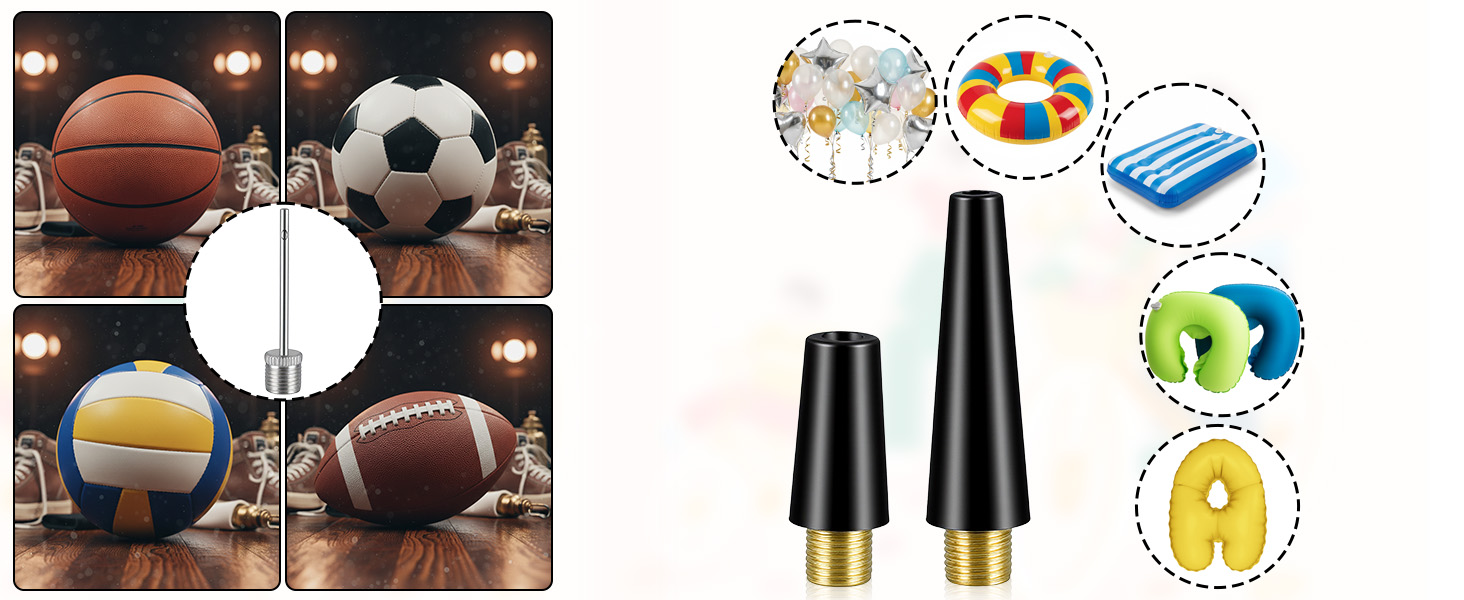 • استخدامات متعددة - تعمل إبر النفخ الخاصة بنا مع الكرات الرياضية، وحلقات السباحة، وكرات اليوجا والأعمدة، والألعاب القابلة للنفخ وإطارات الدراجات، مما يوفر مجموعة واحدة لاحتياجات المنزل وصالة الألعاب الرياضية والسفر.