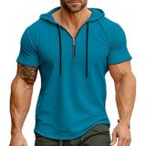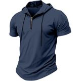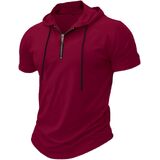بلوفر رجالي بسحاب ربع - قميص رجالي بأكمام قصيرة وغطاء للرأس للتمرين الرياضي وملابس لياقة بدنية ناعمة وقابلة للتمدد in Kuwait