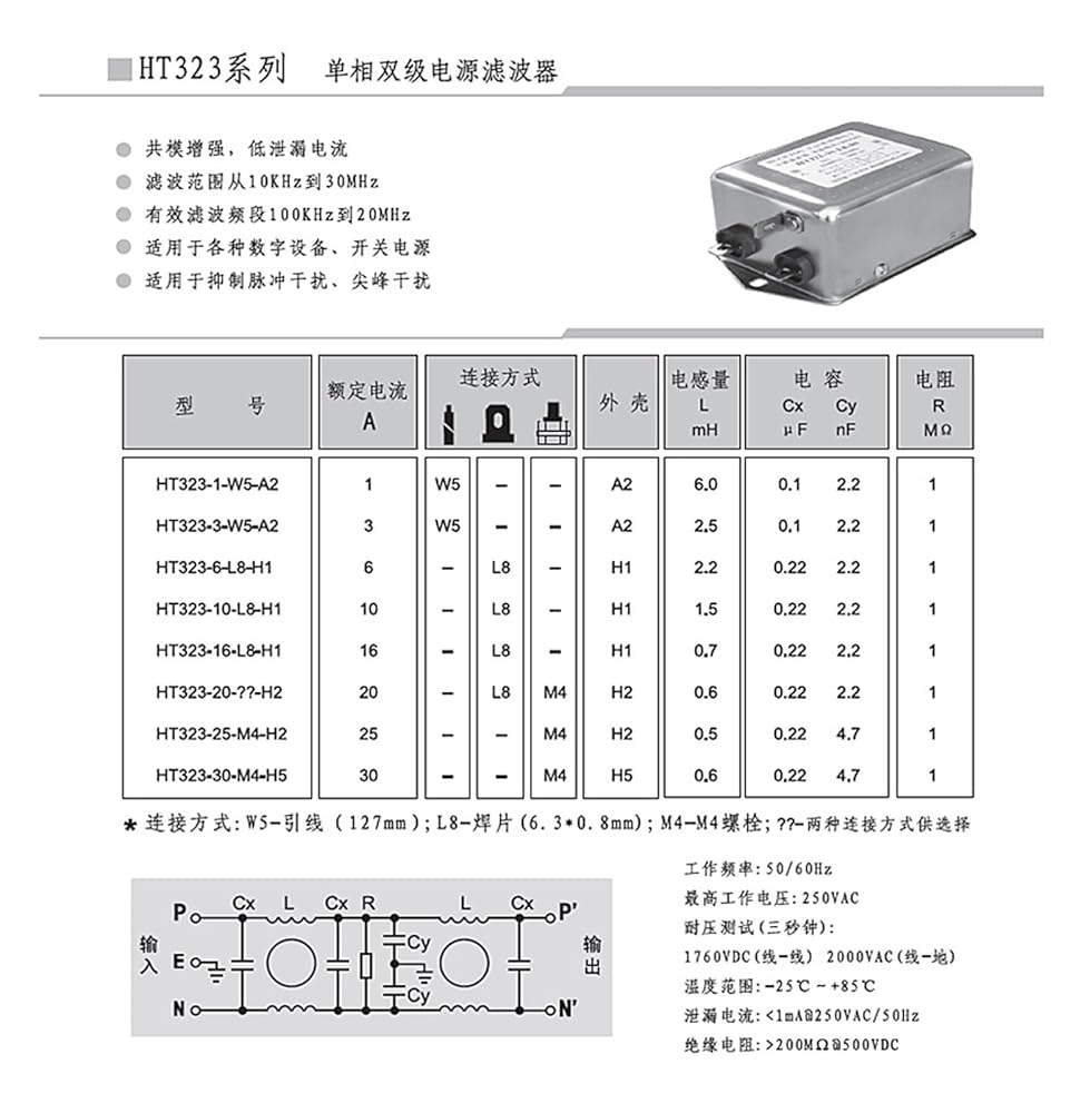 Direct power supply filter HT323-20-L8-H1 220V 20A anti-interference power purification