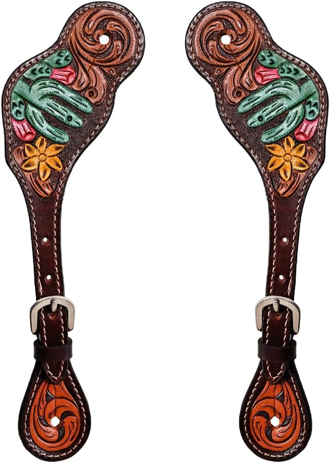 • ✔ Spur Straps: These Spurs Straps Are Made With High-Quality Genuine American Leather With Hand Tooling Design. These Spur Straps Western Womens Have An Adjustable Metal Buckle, Solid, Durable, And Not Easy To Rust Or Break. Our Mens Spur Straps Are Designed To Fit A Range Of Boots Sizes, Making Them A Versatile Accessory For Any Equestrian Enthusiast. You Can Use These Spur Straps In Any Western Events Like Racing, Rodeo, And Shows.