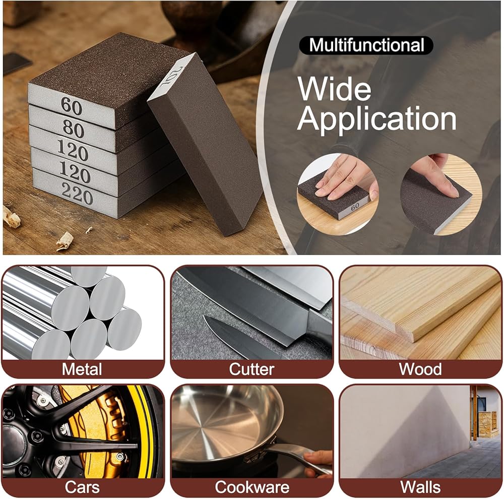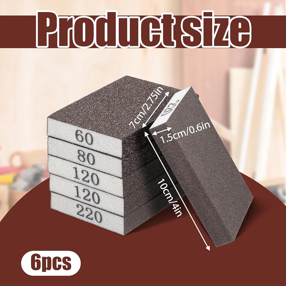Packing List: 6 Pcs sponge sanding blocks, 60, 80, 120 x 2, 220 x 2