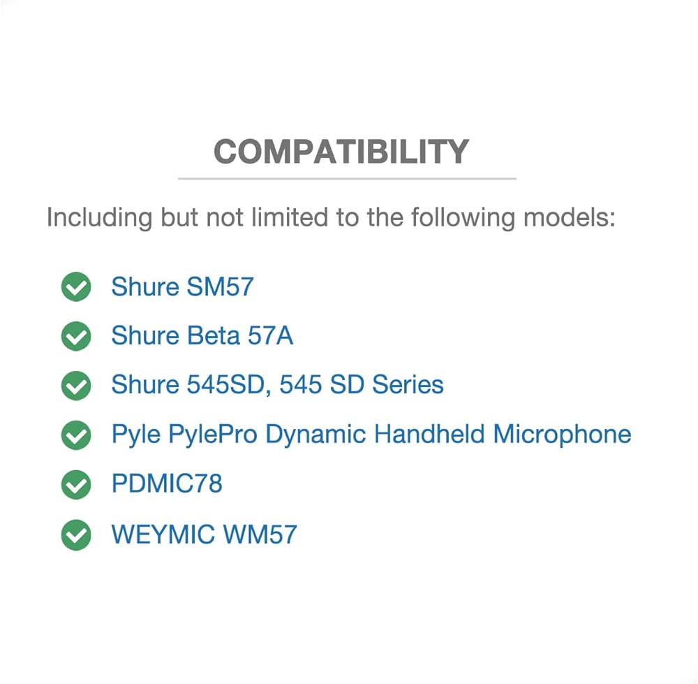 ملاءمة مخصصة مثالية: مصمم خصيصًا ليتوافق مع ميكروفون Shure SM57، Beta 57A، 545SD، 545 SD Series، ميكروفون Pyle PylePro الديناميكي المحمول باليد، PDMIC78، ميكروفون WEYMIC WM57. تضمن الرغوة عالية الكثافة لدينا ملاءمة مريحة وغير قابلة للانزلاق تبقى ثابتة في مكانها أثناء الأداء النشط.