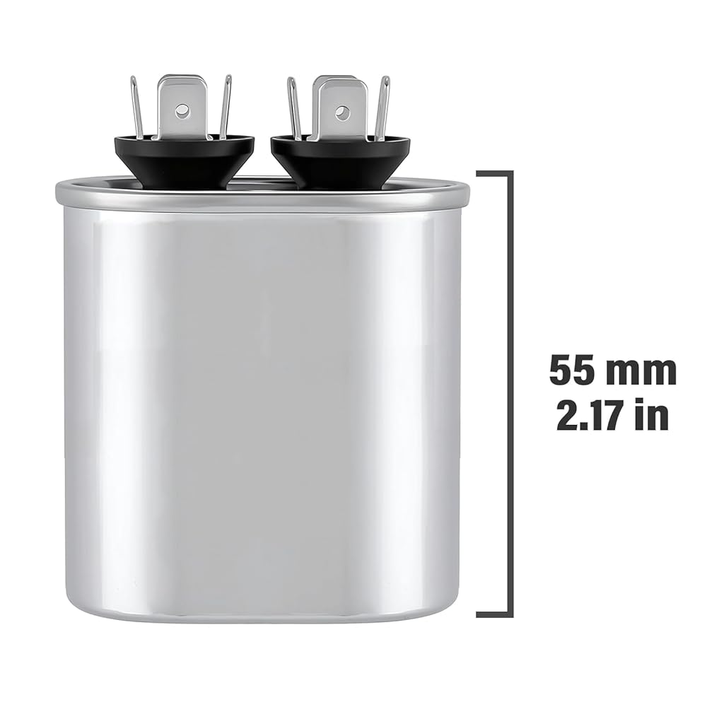 • الأبعاد: الطول: 2.03 بوصة / 51.5 ملم، العرض: 1.24 بوصة / 31.5 ملم؛ الارتفاع: 2.17 بوصة / 55 ملم - مكثف تيار متردد 5 فائق التوهج.