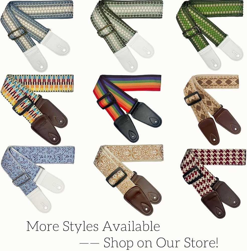 【Durable & Comfortable】: Crafted with premium 3D cotton embroidery and reinforced leather ends, this guitar strap is built to last, resisting cracks and wear even with heavy use. The generous 2-inch width and 2mm thickness provide exceptional comfort, reducing shoulder strain during long practice sessions or live performances