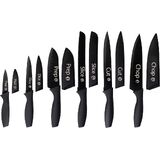 7 PIECE SET - Set of 6 sharp stainless steel kitchen knives with universal storage block to perform everyday prepping, slicing and chopping tasks like a professional. Set comprises 1 x Paring Knife, 1 x Utility Knife, 1 x Santoku Knife, 1 x Bread Knife, 1 x Carving Knife , 1 x Chef Knife, 1 x Block