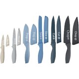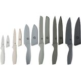 A selection of six essential knives with universal storage block that no chef or kitchen can do without. These high quality extra sharp stainless steel knives have a non-stick antibacterial, corrosion resistant coating and will improve your experience and mastery of all kitchen cutting tasks. The ergonomic handles are soft touch and easy grip for smooth and balanced cutting.