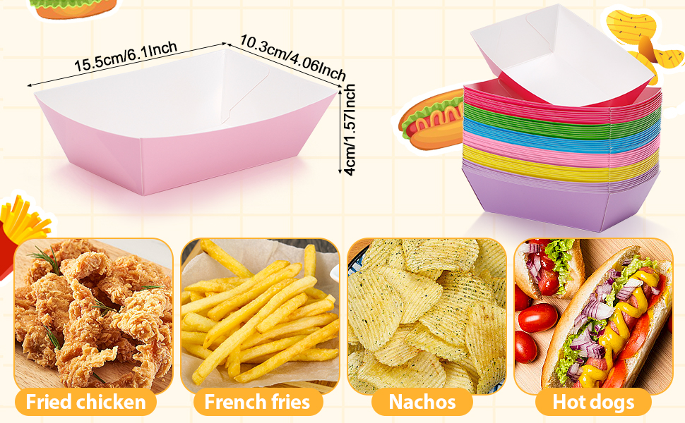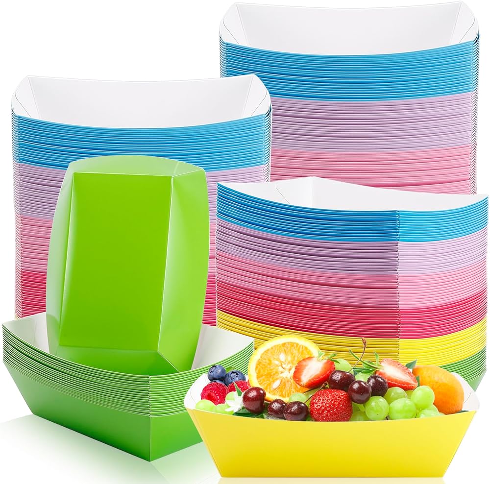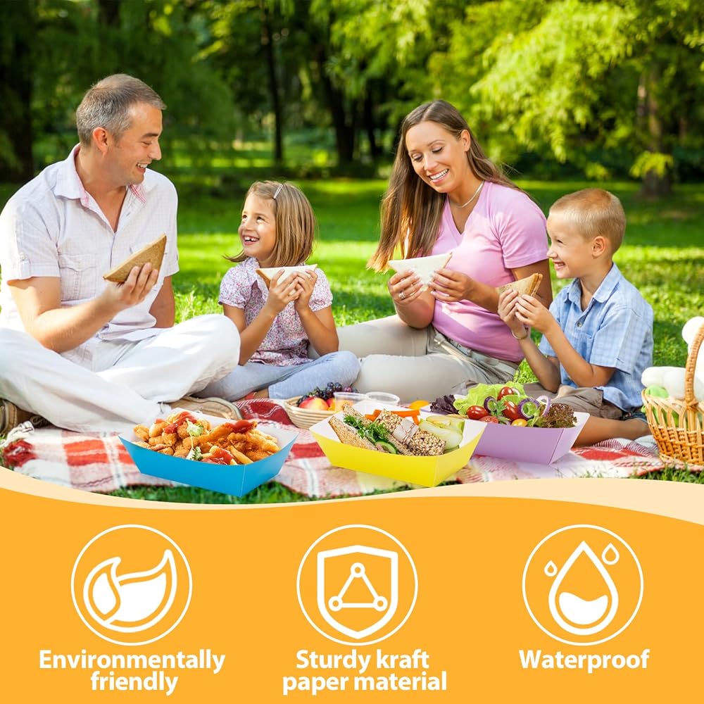 • مادة موثوقة: قوارب صينية الطعام هذه مصنوعة من ورق كرافت فاخر صالح للطعام، آمنة وموثوقة، ومقاومة للتشوه، وتتميز بألوان مشرقة ومقاومة للبهتان. إنها خيار أفضل مقارنة بالصواني البلاستيكية أو الرغوية.