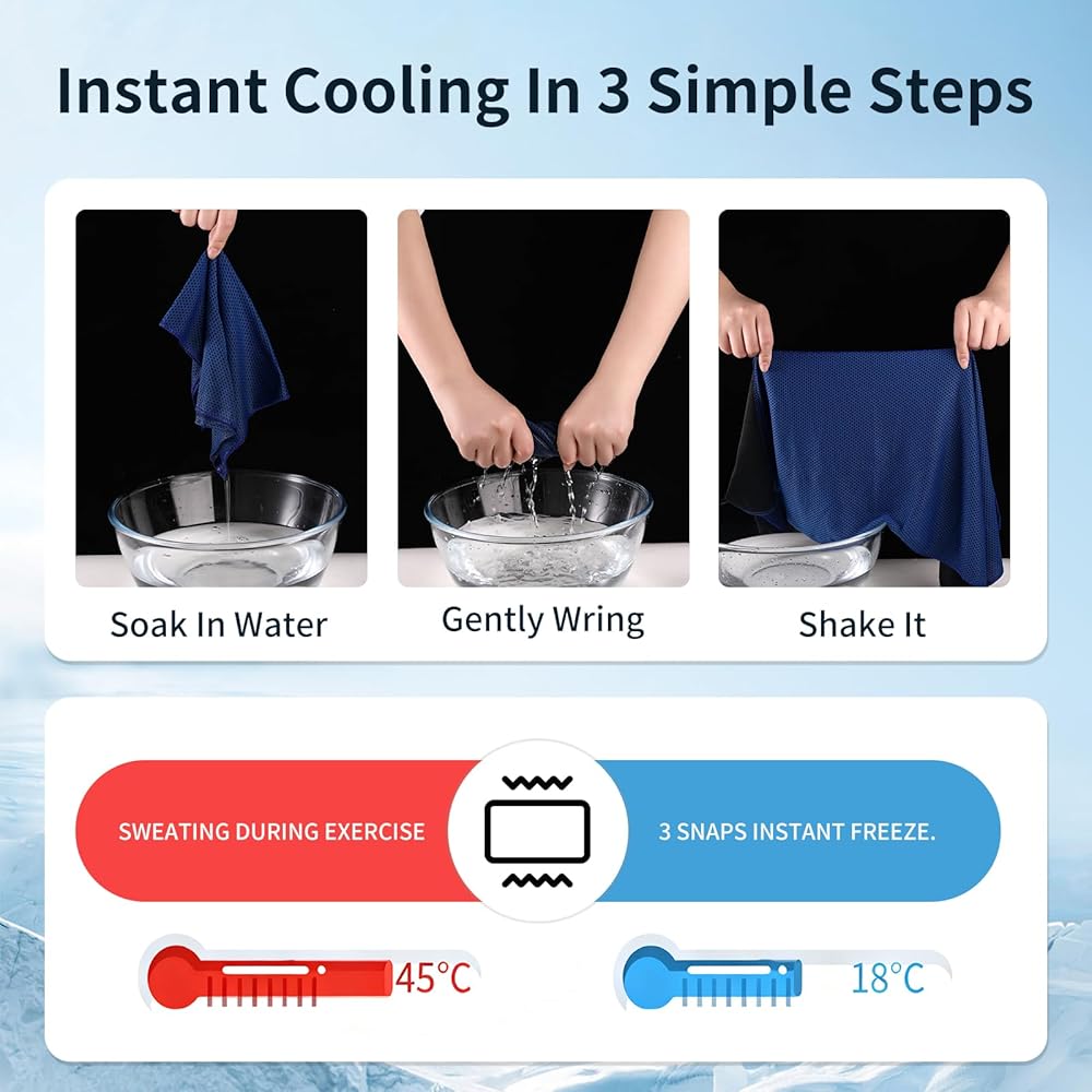 【3-Second Instant Cooling–Just Wet, Wring & Snap!】Fvbber's Cooling Towels deliver instant relief in 3 simple steps: (1) Soak in water, (2) Gently wring, (3) Snap 3 times—then enjoy rapid cooling for hot weather workouts. Perfect for Yoga, Running, Gym, or Outdoor Sports, these Microfiber Ice Towels lower body temperature fast. The lightweight chilly fabric stays breathable for fitness, camping, or beach trips—no bulky gear needed!